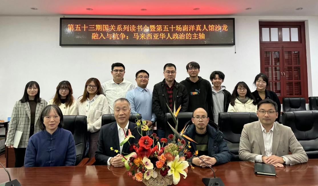 冬至将临,问道听曲,心暖话从容。2023年12月18日下午,第五十三期国关系列读书会暨第五十场南洋真人馆沙龙在厦门大学南安楼301-3会议室举行。本次读书会的主题为“融入与抗争:马来西亚华人政治的主轴”,主讲人是厦门大学国际关系学院/南洋研究院副教授、国际关系系副主任赵海立,主持人由厦门大学国际关系学院/南洋研究院特任助理研究员马广路担任。
