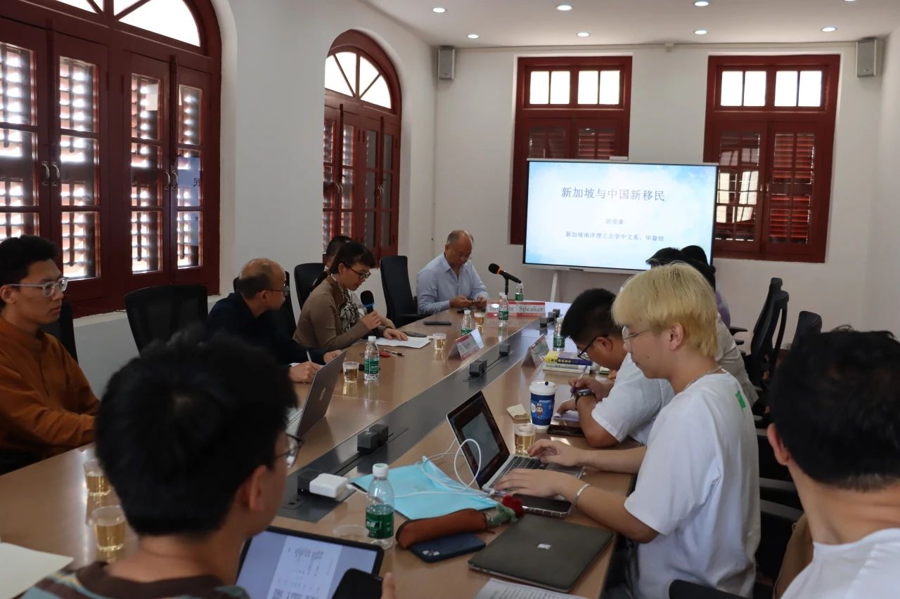 2024年4月16日下午,南洋问题与全球视野系列讲座第四十六讲在厦门大学南安楼309会议室举行。本次讲座特邀游俊豪教授为主讲人,主题是“新加坡与中国新移民”。游俊豪 (Yow Cheun Hoe)博士,新加坡南洋理工大学中文系主任,现任华裔馆馆长、中华语言文化中心主任。任世界海外华人研究学会会员、陈嘉庚国际学会会员、陈嘉庚基金会员、新加坡亚洲研究学会会长 (2018-2020年),及《华人研究国际学报》主编和《Journal of Chinese Overseas》书评编委。曾任美国加州圣地亚哥大学移民比较研究中心Fulbright访问研究员(2013年), 广西民族大学客座教授(2023-2026),广西民族大学创意写作中心写作工作坊导师(2023–2026年),同济大学人文学院客座教授(2019-2022年),西南交通大学人文学院客座教授(2019),华中师范大学菲律宾研究中心顾问(2019)。其研究领域包括华人移民和离散族裔、侨乡关系、离散华文文学等。著有《新加坡与中国新移民:融入的境遇》(香港城市大学出版社,2021年);《移民轨迹和离散论述:新马华人族群的重层脉络》(上海三联书局,2014年);《Guangdong and Chinese Diaspora: The Changing Landscape of Qiaoxiang》 (London & New York: Routledge, 2013);《中国与本土之间:马来亚华文作家双中心意识研究》(Between China and This Local Land: A Study of Dual-Centred Mentality of Chinese Writers in Malaya, 1919-1957)(Penang: Universiti Sains Malaysia Press, 2011)等专著。并在《Journal of Contemporary China》,《Modern Asian Studies》,《Asian Ethnicity》,《Cross-Cultural Studies》,《长江学术》、《外国文学研究》等重要期刊上发表文章多篇。