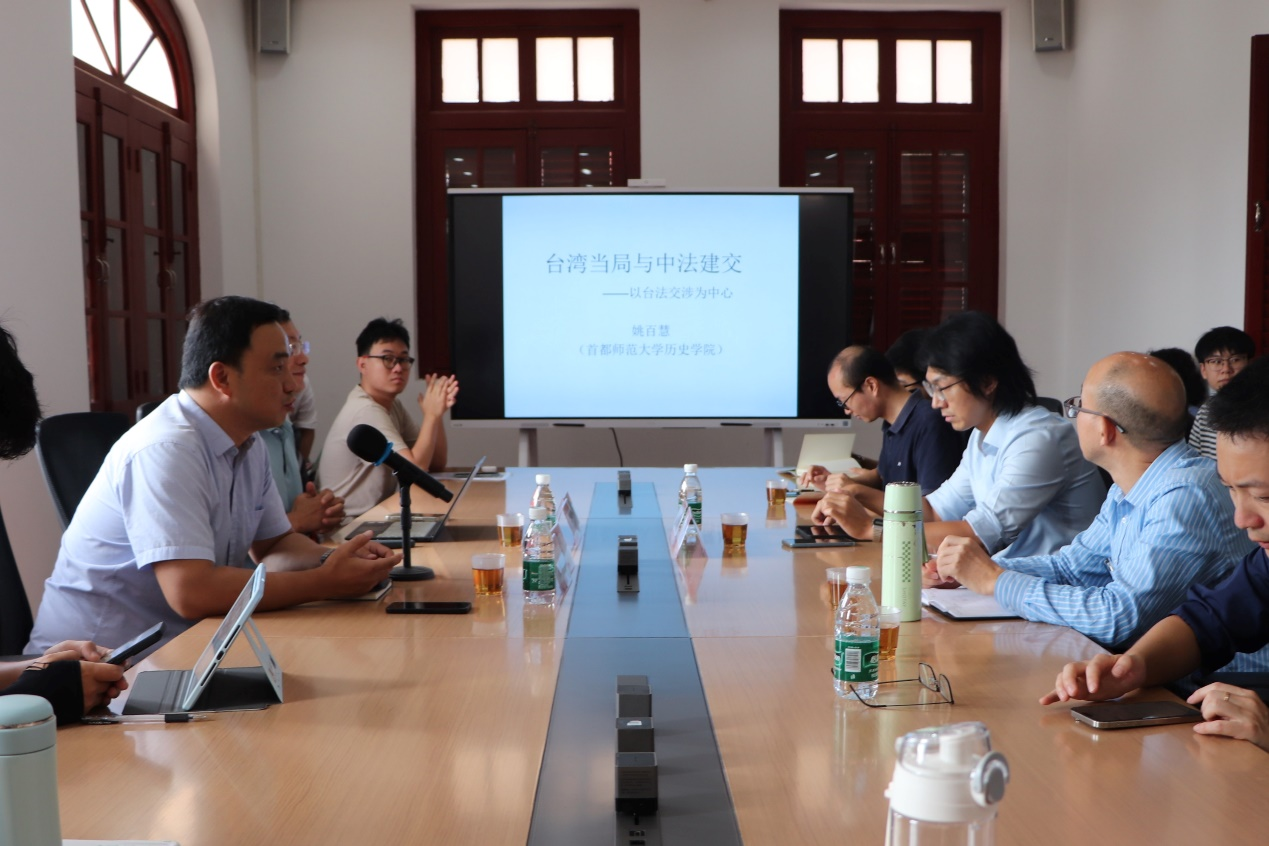 在讲座中,姚百慧教授分别从中法建交的基本进程、相关档案解密进程与研究现状、台湾当局对相应时期中法建交活动的评估和应对三个部分展开叙述。