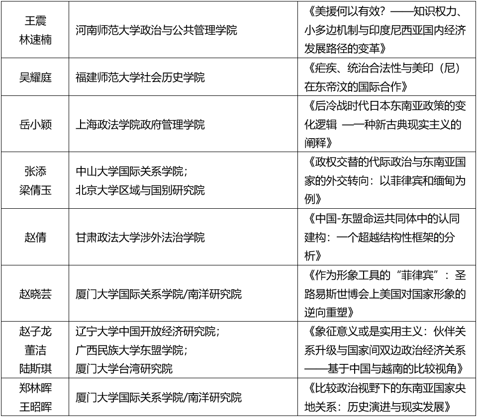 为进一步推动我国东盟研究以及区域国别学的高质量发展,厦门大学东盟研究中心联合《厦门大学学报(哲学社会科学版)》编辑部拟于2024年11月8-10日在厦门举办“从和平共处到命运共同体”第一届厦门大学东盟研究中青年论坛。
