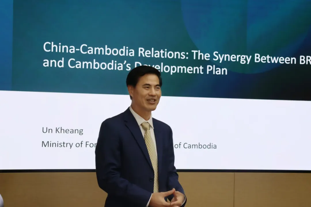 Un Kheang教授首先指出,中柬两国从古至今有着紧密的联系与互动。在古代,巴戎寺墙壁上描绘的中国人的日常活动体现中柬两国的千年联系;在近代,中柬两国在不结盟运动中缔造了更加紧密的中柬关系;在当代,两国通过领导人互访等形式进一步巩固友好关系。