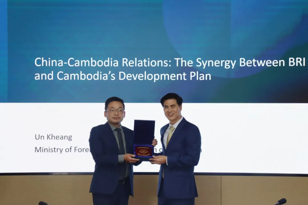 讲座中,Un Kheang教授回顾中柬两国源远流长的友谊,强调了中柬两国友好合作的基础,并具体介绍“一带一路”项目对柬埔寨发展计划的协同作用。