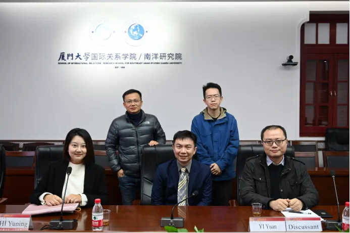 2025年1月7日下午,南洋问题与全球视野系列讲座第六十四讲在厦门大学南安楼301-3会议室举行。本次讲座特邀何子恩(Benjamin Ho)博士为主讲人,主题为“特朗普2.0与中美在东南亚的竞争”。何博士在英国伦敦政治经济学院(LSE)获国际关系博士学位,现担任新加坡南洋理工大学拉惹勒南国际研究院中国项目助理教授,主要研究中国的国际关系、亚太地区的安全多边主义,重点关注区域机构和论坛、国家安全等议题。本次讲座由厦门大学国际关系学院/南洋研究院石玉凝助理教授担任主持人,厦门大学国际关系学院国际关系系主任衣远副教授担任与谈人。