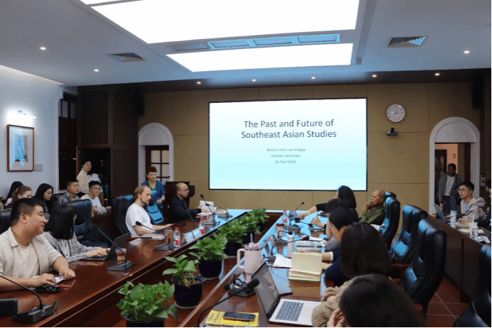 2025年4月15日下午,南洋问题与全球视野系列讲座第七十一讲在厦门大学南安楼301-3会议室举行。本次讲座特邀Barbara Andaya教授担任主讲人,主题是“东南亚研究的回顾与展望”。Andaya教授是美国夏威夷大学亚洲研究荣休教授,曾执教于马来亚大学、奥克兰大学、新加坡国立大学等一流院校,长期专注于东南亚近代早期历史研究,尤其关注性别议题及社会文化的历史演变。2000年荣获古根海姆奖,2005-2006年担任美国亚洲研究协会主席,2010年受邀出任新加坡国立大学莱佛士讲座教授,2011-2012年担任该校陈振传基金讲座教授。讲座由沈惠芬老师主持。