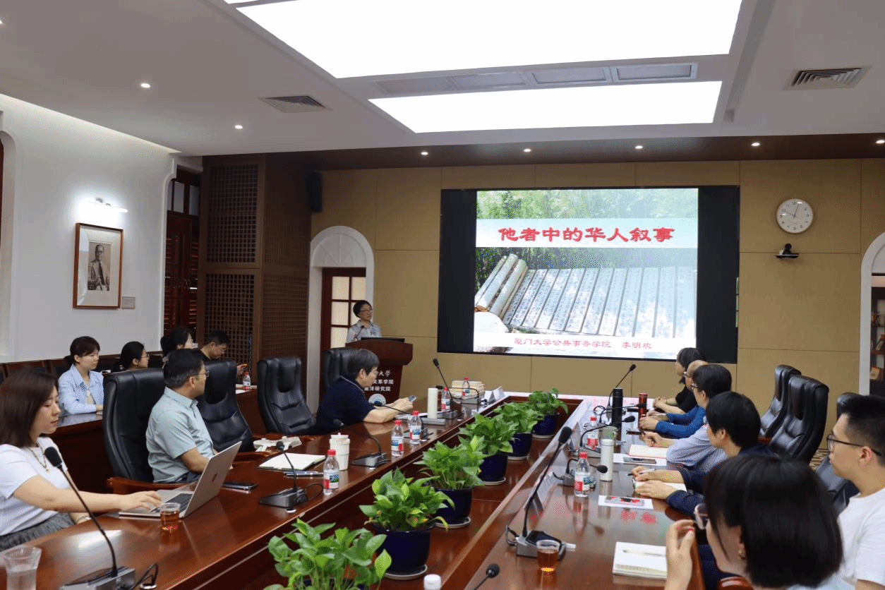 2025年5月9日上午,“南洋问题与全球视野系列”第七十四讲、华侨华人与国际移民系列第七讲在厦门大学南安楼301-3会议室举行。本次讲座特邀厦门大学公共事务学院二级教授,博士生导师,暨南大学华侨华人研究院特聘教授李明欢担任主讲人,主题为“他者中的华人叙事”。李明欢教授长期从事国际移民和华侨华人研究,现任世界海外华人研究学会(ISSCO)会长,中国华侨历史学会副会长,国务院侨务办公室和国家移民局专家咨询委员,福建省文史馆馆员等职。