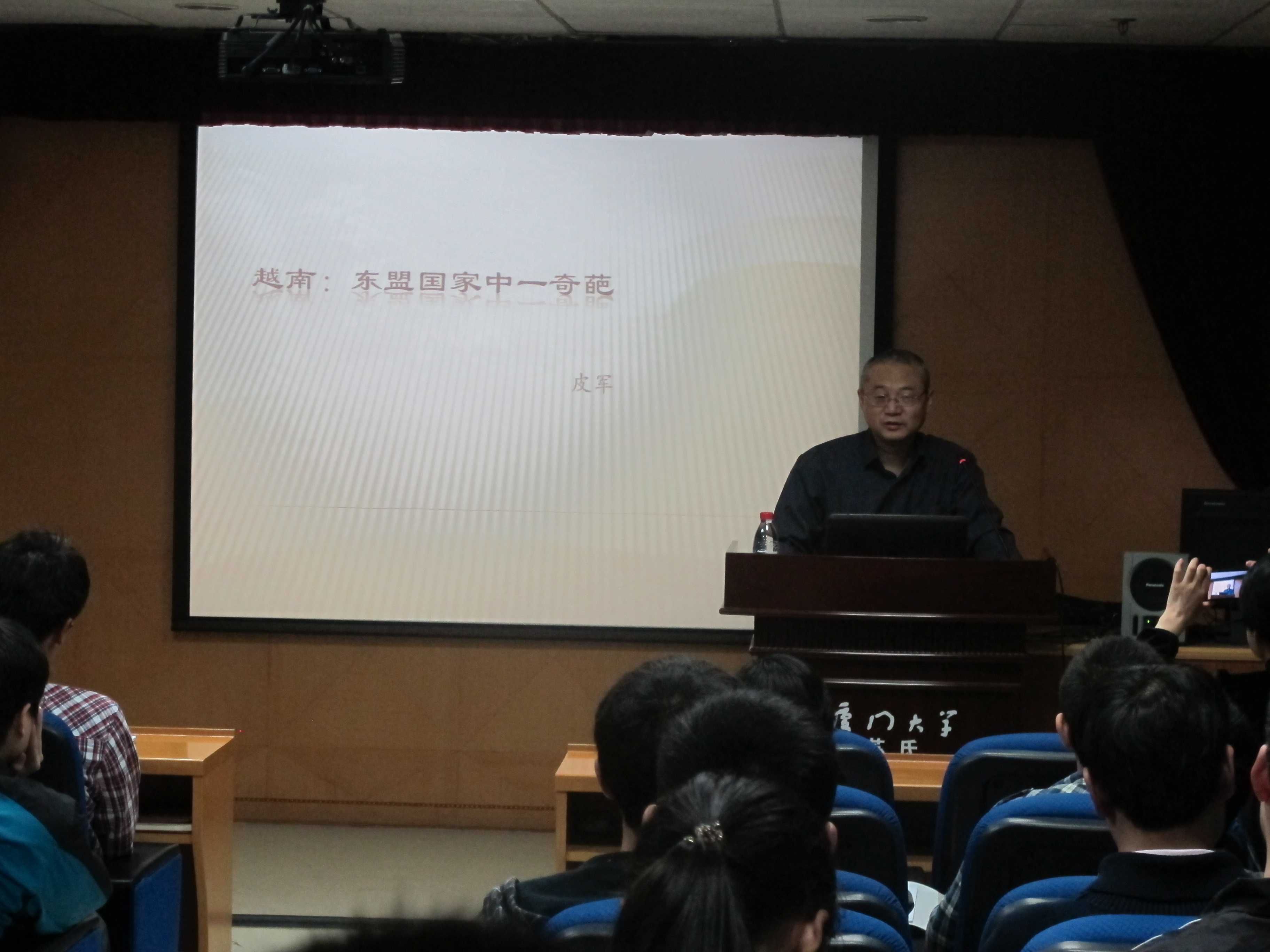 2013年3月21日晚上7点国际关系学院/南洋研究院越南经济问题专家、经济学博士皮军副教授在颂恩楼(嘉庚三)514为我院学生举办了一场主题为“越南——东盟国家中的一朵奇葩”的讲座,院内外众多学子慕名前来。