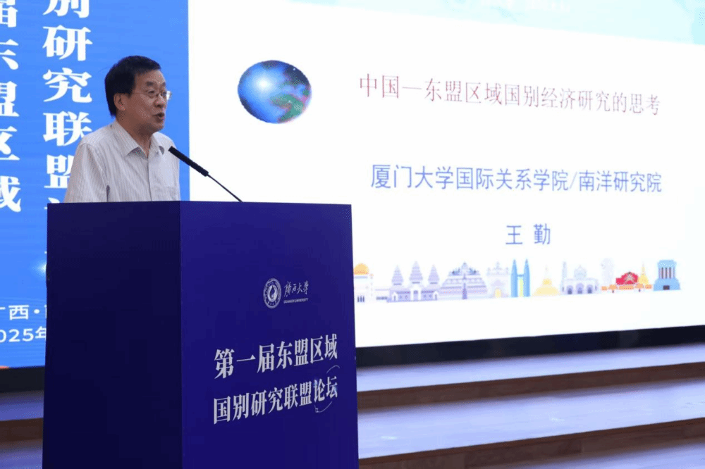 2025年6月14日,第一届东盟区域国别研究联盟论坛在广西大学成功举办。厦门大学国际关系学院/南洋研究院王勤教授应邀出席论坛并作题为《中国—东盟区域国别经济研究的思考》的主旨报告。他指出,国别研究在区域国别学中的重要性日益凸显。结合长期从事区域国别研究的经历,他对东盟区域国别研究提了几点看法。第一,要注重中国—东盟区域国别的跟踪研究。由于该区域涵盖11国,区情和国情错综复杂,各国发展水平、政治制度、社会文化和宗教信仰差异大,该区域国别的跟踪研究就显得十分重要。因此,区域国别从业者必须将中国—东盟区域国别研究作为主业,而不是副业,坚持长期不断的跟踪研究,才能把握该区域国别的发展脉络,产出具有标志性的科研成果。第二,要强调中国—东盟区域国别的基础性和跨学科研究。目前,国内对该区域国别的研究发展较快,涌现出众多机构,学术论著和研究报告层出不穷,但总体来看基础性研究仍显不足。另一方面,区域国别学是一门交叉学科,跨学科研究不可避免,但跨界研究要记得补课。第三,要培养区域国别研究者的学术素养。中国社科院学部委员、中国社会科学院大学国际政治经济学院院长张宇燕说得非常到位,他指出区域国别学从业者的“三位一体”:既要以至少一个国家或区域为主要关注对象,也要以至少一个特定问题领域为主攻方向,还要以至少一个人文社会科学学科分支“再+1”为智识基础。第四,要学会运用区域国别研究的统计工具和计量模型。