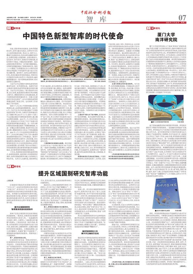2025年7月22日,《中国社会科学报》智库版刊发《厦门大学南洋研究院》一文。