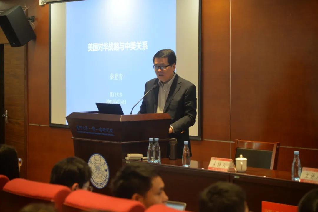 2021年4月4日上午,厦门大学国际关系学院/南洋研究院在嘉庚四420室主办“美国对华战略演变与中美关系”主题讲座,主讲嘉宾为外交学院教授秦亚青,主持人为厦门大学南洋研究院教授周桂银。