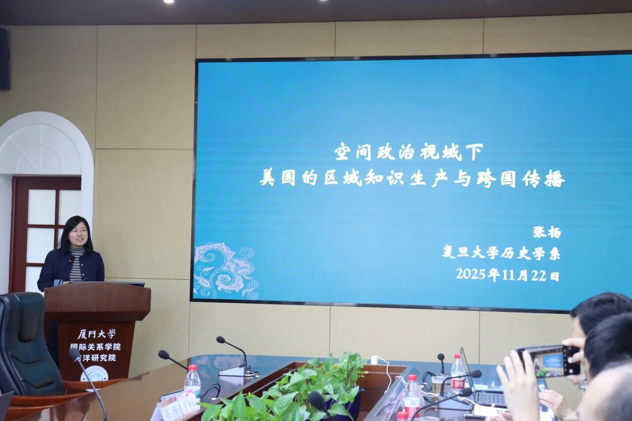 2025年11月22日上午,南洋问题与全球视野系列讲座第86讲在厦门大学南安楼301-3会议室举行。本次讲座特邀复旦大学历史学系教授、博士生导师张杨主讲,主题为“空间政治视域下美国的区域知识生产与跨国传播”。
