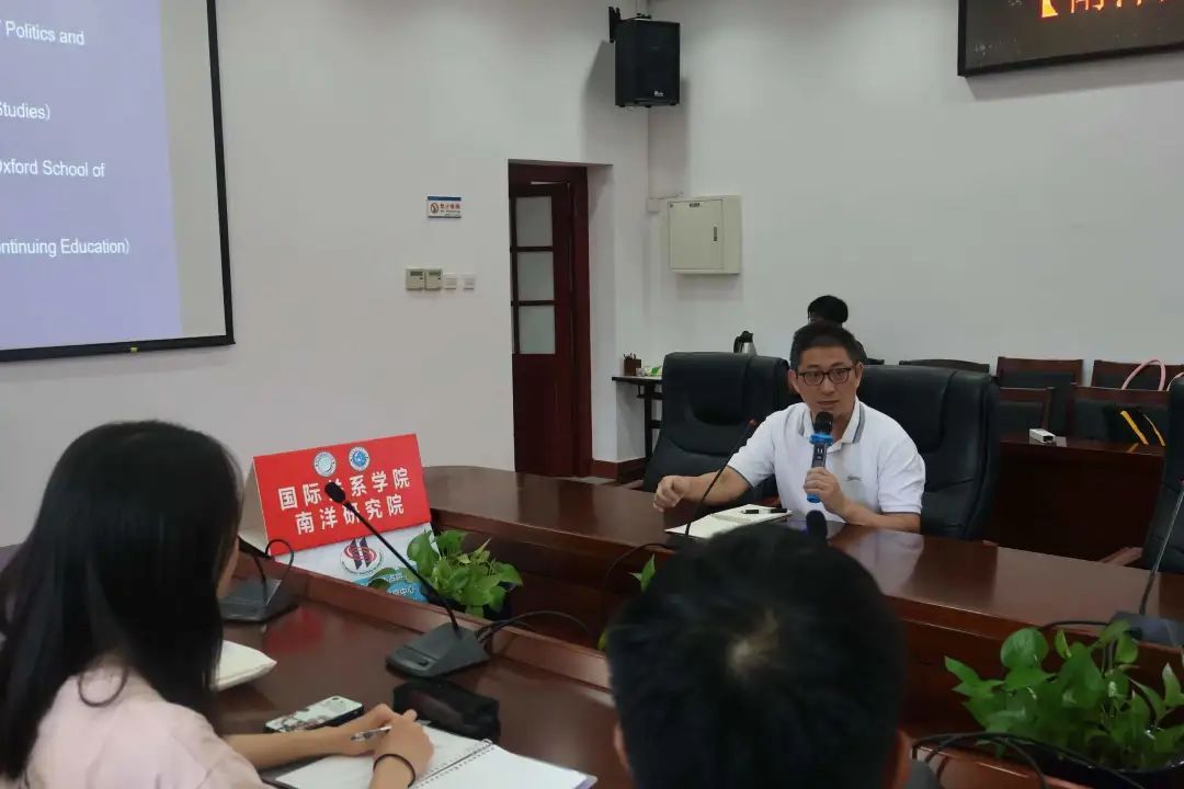 2022年9月28日上午9点,国际关系学院/南洋研究院研究生会于南安楼301-3会议室举办了第十一期“南洋师说”:牛津大学访学汇报讲座,由我院助理教授陈锴主讲。此次讲座贯穿了一条主线,即当前牛津大学的国际关系学科的两大支柱——PPE(Philosophy,Politics and Economics)与区域研究。