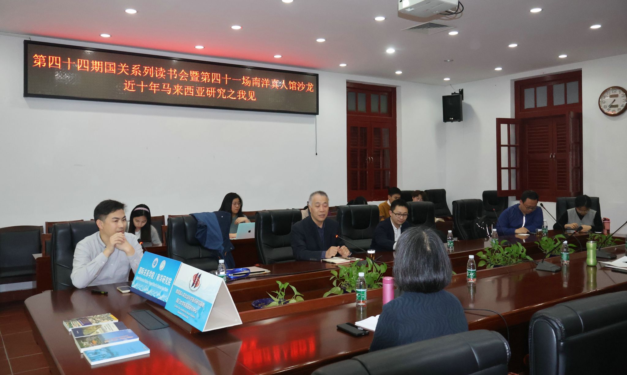 春风有信,云霞绕近十年马来西亚研究述要 | 第四十四期国关系列读书会暨第四十一场南洋真人馆沙龙回顾峰。2023年3月11日晚,第四十四期国关系列读书会暨第四十一场南洋真人馆沙龙在厦门大学思明校区南安楼301-3会议室举行,本次读书会主讲人为中国社会科学院中国社会科学出版社编审、福建省“闽江学者”讲座教授、曲阜师范大学特聘教授宋燕鹏,厦门大学国际关系学院/南洋研究院副教授赵海立担任主持人。