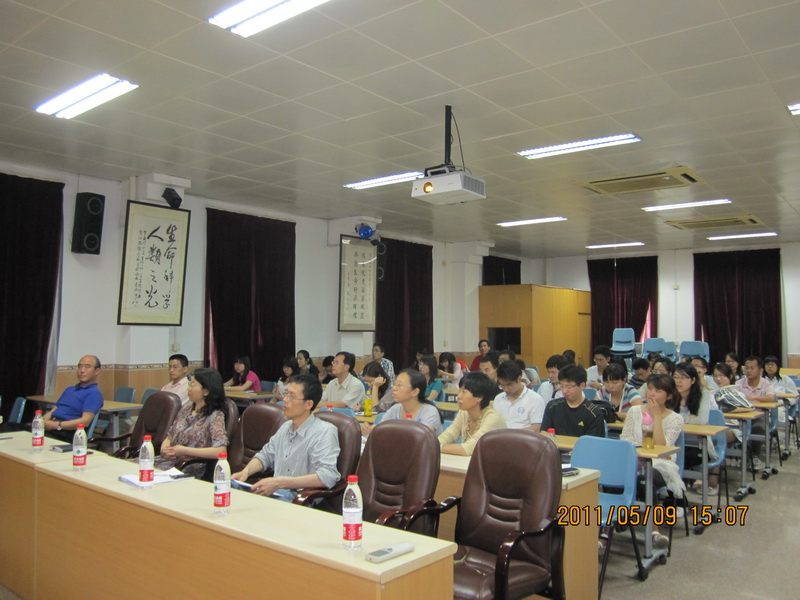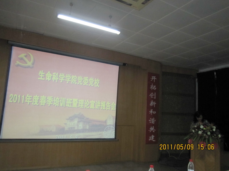 2011年5月9日下午15:00,生命科学学院党委在生物II馆122报告厅举办了党委党校2011年度培训班暨理论宣讲报告会。特邀我院院长庄国土教授,作题为《中东北非局势对中国的启示:以埃及民变为例》的专题报告。报告由生科院党委书记刘梅主持,我院党总支书记范丽、副书记黄俊清、团委书记沈丽秀出席报告会。生科院党委委员、各党支部书记、委员,团委辅导员,党务秘书,入党积极分子等前来听取报告。