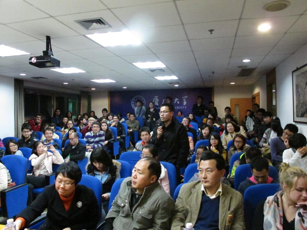 讲座最后,各院系的同学、老师发言踊跃,积极向王教授提问,场内高涨的热情将讲座结束时间推迟半个小时。王教授表示,希望借此机会推动里奇蒙大学与厦门大学国际关系学院的交流与合作。最后,国际关系学院副院长施雪琴教授代表我院向王教授赠送纪念品表示诚挚的感谢!