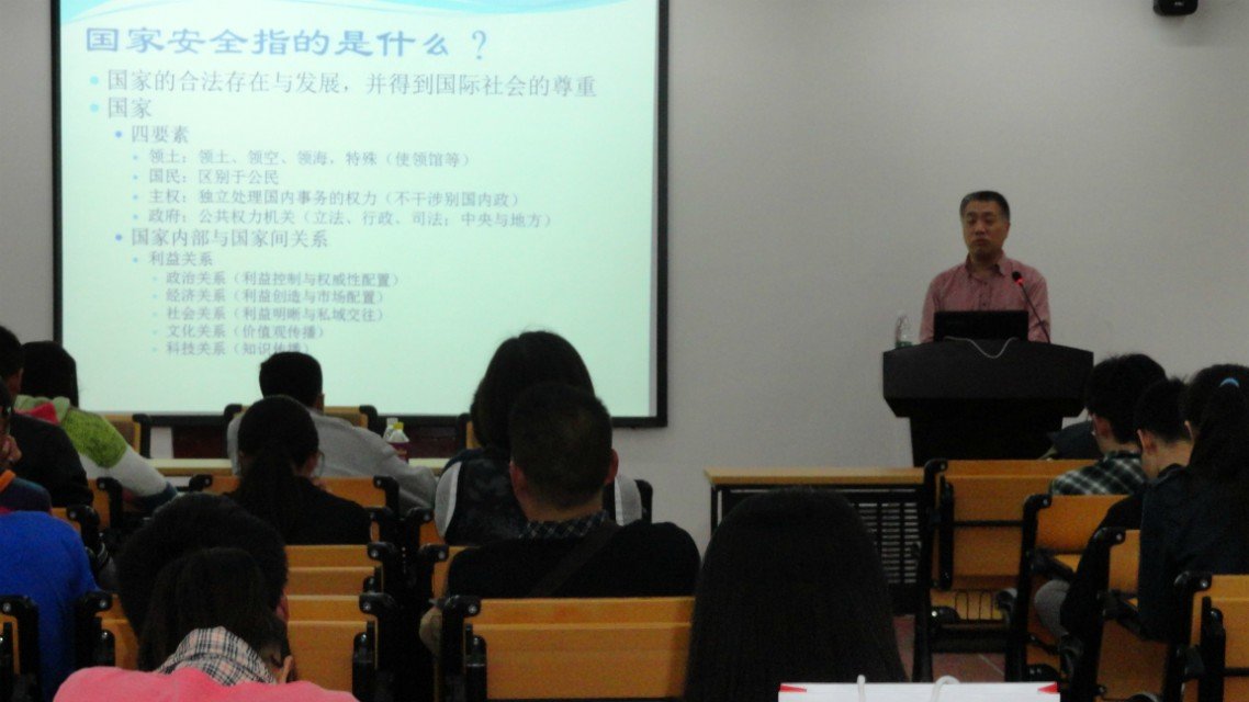 赵海立老师曾开设《政治学原理》、《国际政治概论》、《国际政治理论与方法》、《西文政治思想史》、《当代西方政治思潮》、《东南亚政治》、《华侨华人与中国的关系》等课程,多年来致力于东南亚问题研究。此次讲座主要围绕南海领土争端与国家安全问题展开,赵老师通过对影响国家安全的相关要素的分析,结合当下的国际国内热点问题,对目前我国面临的领土安全、领空安全、主权安全、政府安全、国民安全等国际威胁的诸多方面进行了精彩阐述。紧接着,他重点对南海问题的属性、争端来源和争端解决前景等议题作了多角度的深层次解读,揭开了南海领土争端问题的神秘面纱。他指出:目前,中国所面临的安全形势较为严峻,其中南海问题凸现就是其重要的表现。它不仅是中国和东南亚几个国家的领土争端,还有中国崛起过程中与周边国家一级域外大国国力的较量,不仅关乎中国的核心利益,也与周边国家以及美国的利益相交汇。他还表示:在这一片不宁静的蓝色海域,“群雄”并起、大国逐鹿,中国在努力突出重围、捍卫国家核心利益的同时,还要留心把握好与南海问题相呼应的朝核问题、钓鱼岛问题、缅甸问题等方面的平衡。