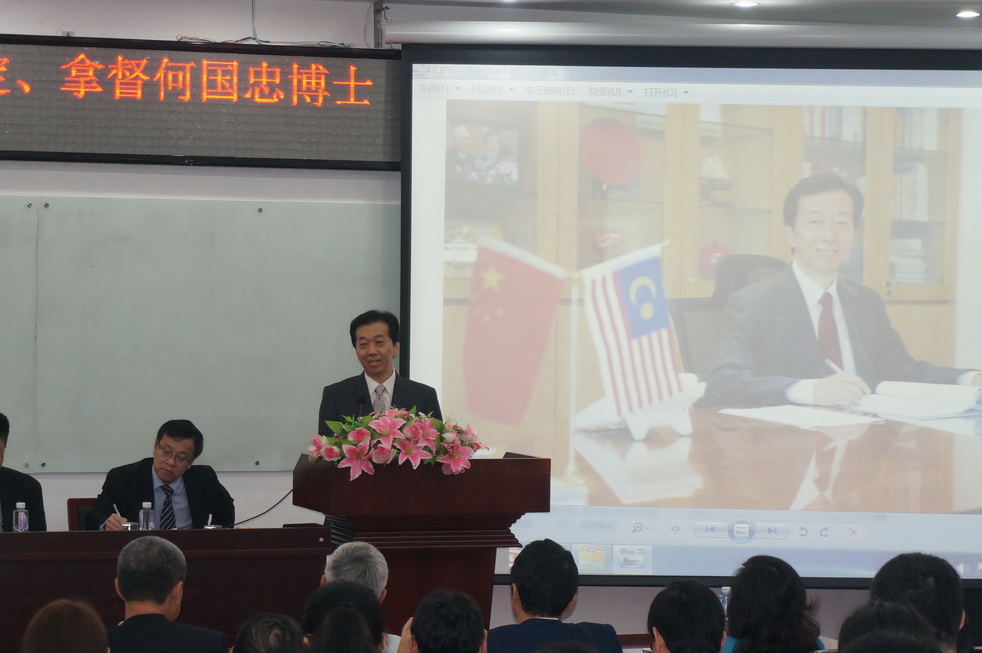 黄主席在演讲中回顾了中马建交的历史渊源,指出马来西亚是东盟国家中较早与中国建立外交关系的国家,中马之间友情深厚。接着通过习近平主席访问马来西亚及马来西亚首相纳吉布访华两个实例,详细分析了中马两国关系四十年的发展,并指出了今年纳吉布访华过程中取得的几个重点突破,包括:柔性外交的突破、患难见真情,双边互信深厚、以及双边在区域合作、历史、安全、人文、教育、科技合作等方面取得的进展等,尤其强调了厦门大学马来西亚分校在促进双边文化合作中的作用。展望中马关系的未来,黄教授期待双边关系在历经“四十不惑”的稳固阶段后更上一层楼。