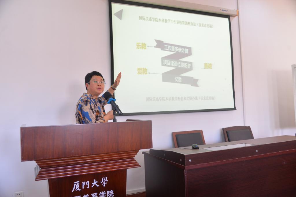 为深入落实全国教育大会和《加快推进教育现代化实施方案(2018—2022年)》精神,贯彻落实新时代全国高校本科教育工作会议和《教育部关于加快建设高水平本科教育 全面提高人才培养能力的意见》、 “六卓越一拔尖”计划2.0系列文件要求,推动新文科建设,做强一流本科、建设一流专业、培养一流人才,全面振兴本科教育,提高高校人才培养能力,实现高等教育内涵式发展;秉承弘扬厦大百年优良办学传统,深入推进教育教学改革,遵循“以生为中心、以学为中心、个性化培养”的教育教学理念,落实四个回归,推动提升学院本科教学工作水平,服务世界一流研究型大学建设目标,2020年11月16日下午,国际关系学院召开建院以来的首次本科教学工作专题会议。