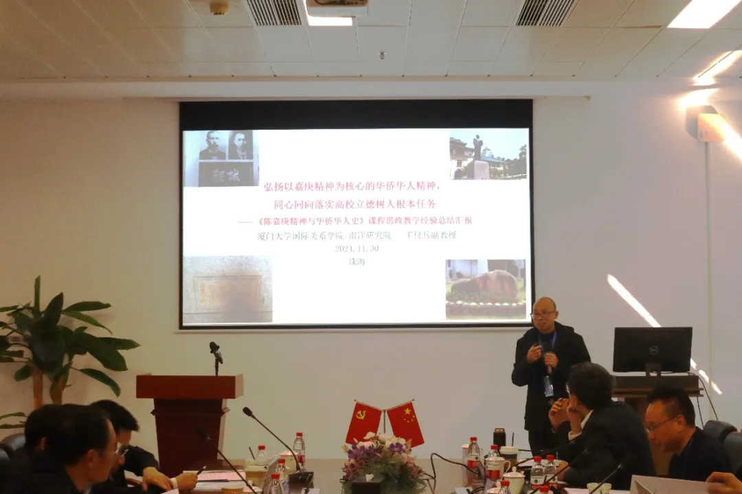 我校王付兵副教授参加看教研经验交流会并以“弘扬以嘉庚精神为核心的华侨华人精神,同心同向落实高校立德树人的根本任务”为主题发言。他介绍,华侨相关选修课程将思政引领、案例启发、人文感悟和实践传承相结合,通过历史个案教学,让学生在实践中感悟和传承嘉庚精神,形成了独特的教学创新模式,并为国际关系人才培养提供了新思路。