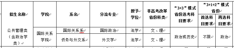 2022年,国际关系学院/南洋研究院国际政治、外交学两个专业的本科招生专业(类):
