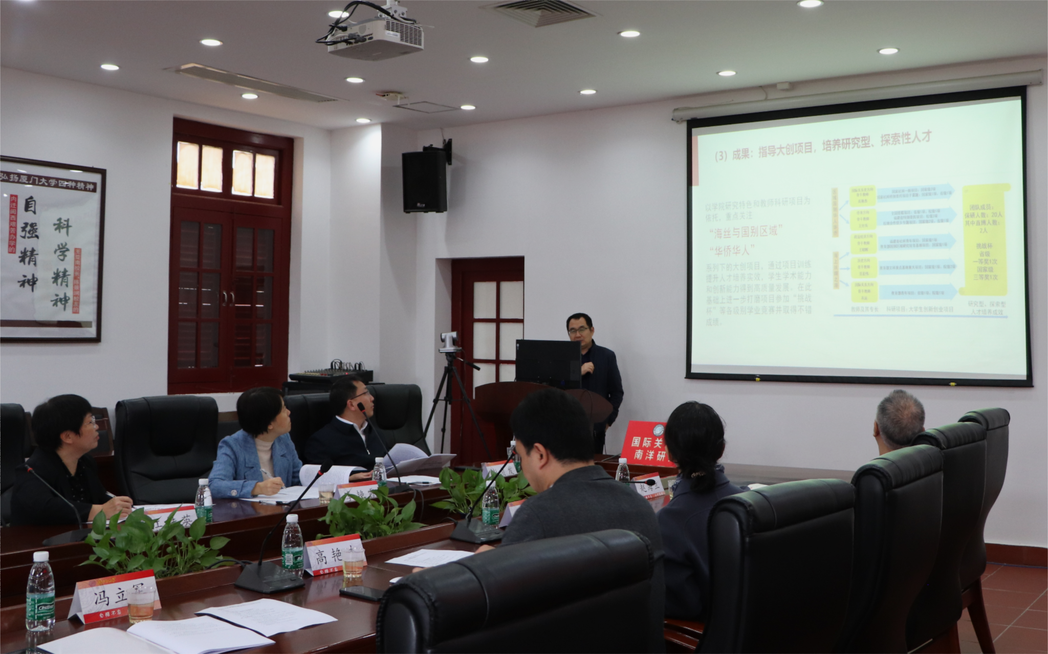 首先由冯立军副院长进行学院本科教育教学评估汇报,内容包括新一轮本科教育教学审核评估工作进展、学院本科人才培养成效及亮点、学院下一步教育教学改革方向和主要举措。