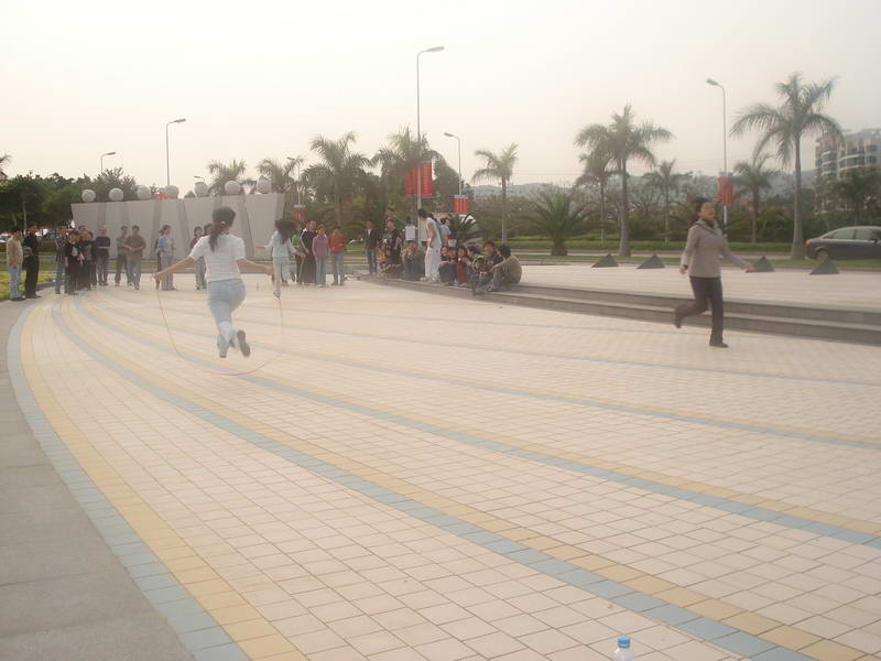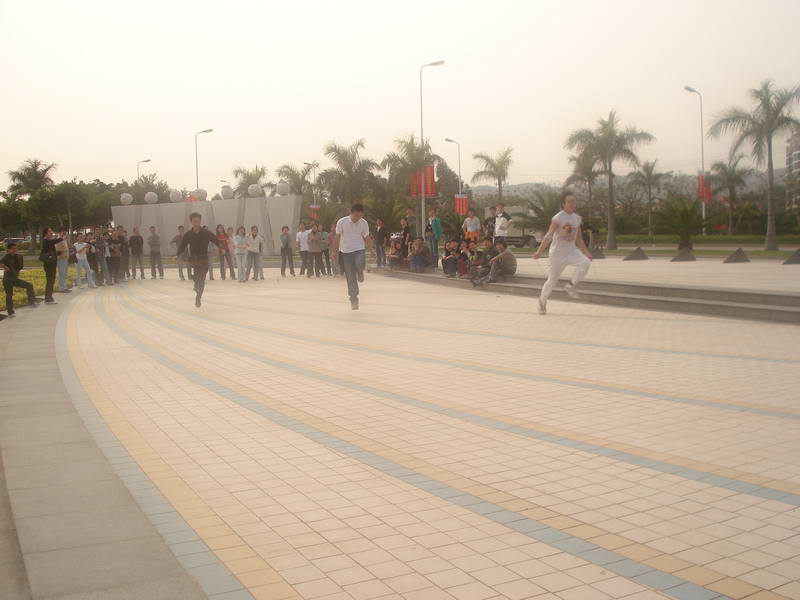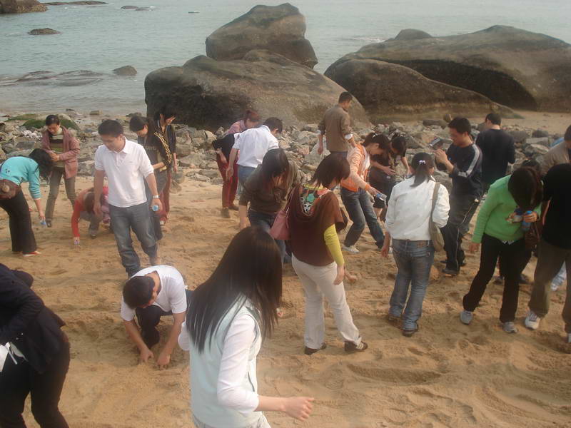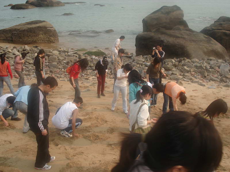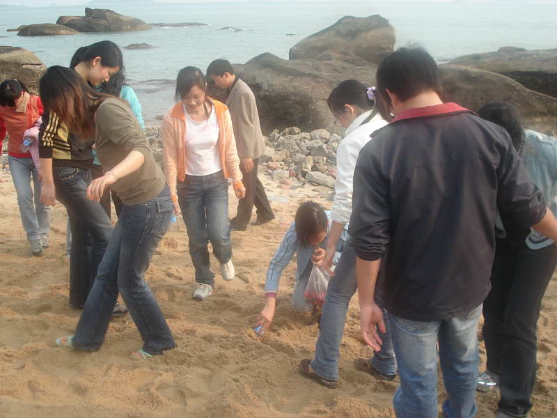 (本院讯曾慧/文 杨晓燕、姚晓静/图))3月28日下午3:00,我院学生党支部在环岛路音乐广场进行了一场别开生面的体育竞技活动。活动由院党总支副书记杨老师主持,洪小荣和姚晓静二位老师也到场参与,世界经济,国际关系和专门史三个支部的全体党员和积极分子参加了本次活动。活动分为拔河比赛、沙滩寻宝、跳绳接力跑和掷沙包四个部分。经过三轮比赛,专门史支部以两战两胜的优势率先夺得拔河比赛的冠军,世经支部和国关支部分获亚军和第三名;第二场集体项目跳绳接力赛上,世经支部以明显的优势夺得桂冠,国关支部和专门史支部分获亚军和第三名;最后一项“掷沙包”的比赛上,三个支部势均力敌,在第一轮比赛中战成平局。在二分钟的加时赛上三个支部又一次打平,显示了旗鼓相当的实力。最后只能以用时的长短决出胜负,由国关支部夺得冠军,专门史和世经支部以微小的差距分获亚军和第三名。每场获胜集体和沙滩寻到“宝物”的同学都得到了诱人的奖品——草莓。