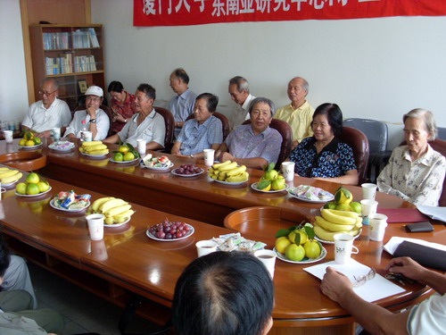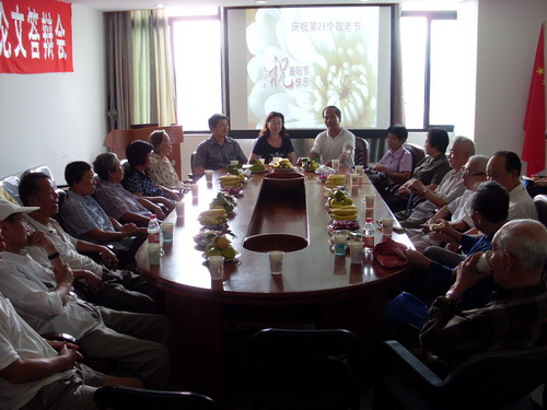 为庆祝第二十一个敬老节,10月9日下午国际关系学院/南洋研究院在颂恩楼1036室举办“08年重阳节座谈会”。数十位知名的离退休老教师受邀并参加了这次活动。