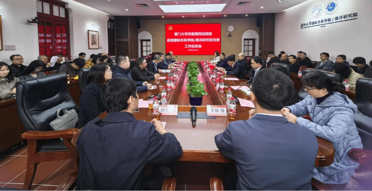 根据十二届校党委第四轮巡视统一部署,3月31日上午,校党委第四巡视组在南安楼301-3召开巡视国际关系学院/南洋研究院党委工作动员会。校党委巡视办主任洪真裁,第四巡视组组长黄鸿德、副组长郑树东等巡视组全体成员,国际关系学院/南洋研究院党政领导班子成员、师生党支书记、全体在职教职工、离退休教职工代表、学生代表等参加会议。会议由学院党委书记邱旺土主持。