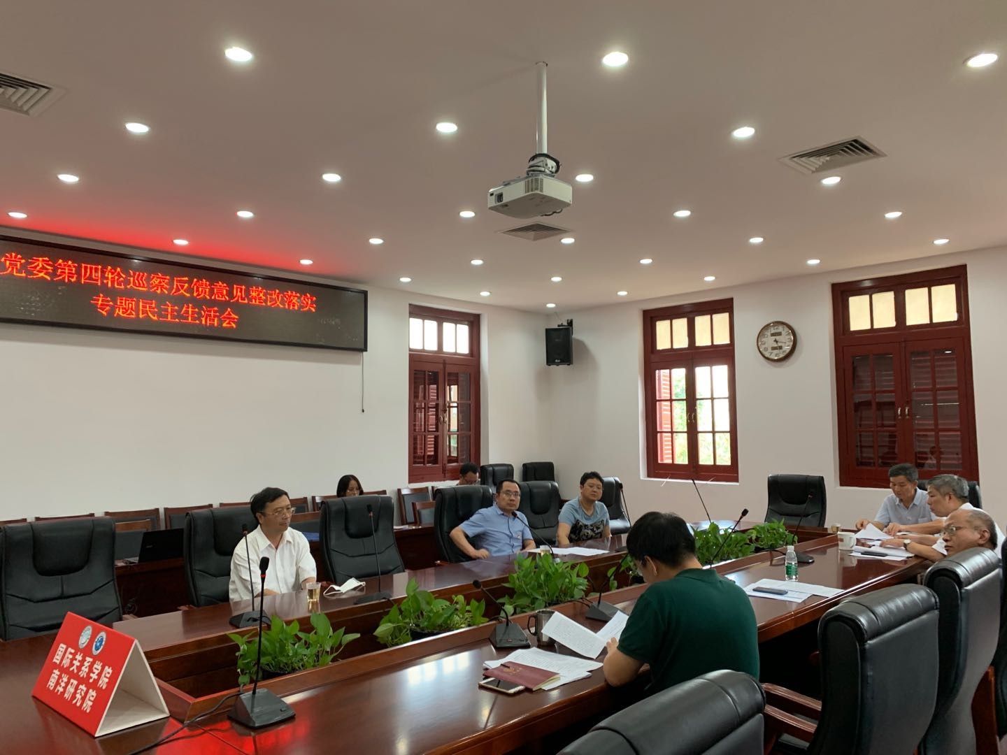 2020年9月21日下午,国际关系学院/南洋研究院党委召开巡察反馈意见整改落实专题民主生活会。第四巡察组副组长林自和到会指导。学院党委书记张必华、院长李一平等党政领导班子全体成员参加会议。院办主任、团委书记、党务秘书等同志列席会议。会议由院党委书记张必华主持。