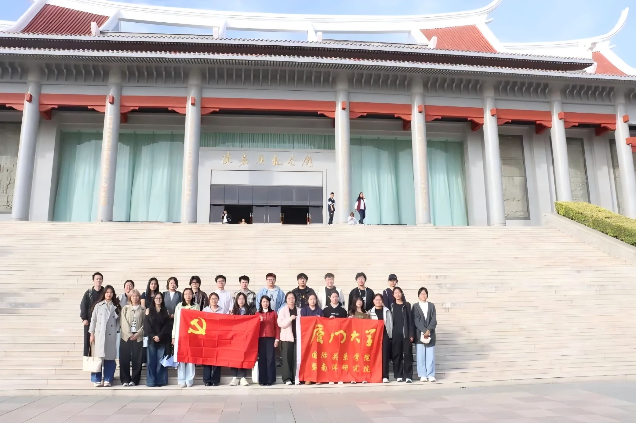 为深入学习贯彻习近平新时代中国特色社会主义思想,大力弘扬以“忠公、诚毅、勤俭、创新”为核心的嘉庚精神,引导青年学子从华侨爱国史中汲取奋进力量,2025年11月28日,厦门大学国际关系学院/南洋研究院组织2025年“红心向党”成长营之学生入党积极分子、新发展党员,赴陈嘉庚纪念馆、集美鳌园开展沉浸式参观学习活动,重温抗战岁月里华侨华人群体的赤子情怀,感悟“华侨旗帜、民族光辉”的精神内核。