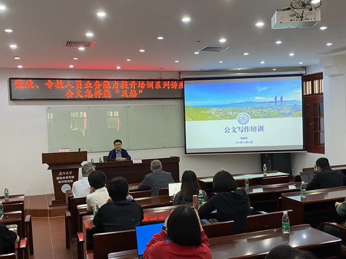 为深入贯彻习近平新时代中国特色社会主义思想及习近平总书记致厦门大学建校100周年贺信精神,落实《厦门大学办公室关于加强业务培训提升履职能力的通知》要求,发挥基层党组织战斗堡垒作用和党员先锋模范作用,进一步提升服务“双一流”建设能力水平,国际关系学院/南洋研究院行政教工支部与公共事务学院、教育研究院联合举办党政、专技人员业务能力提升培训系列讲座。