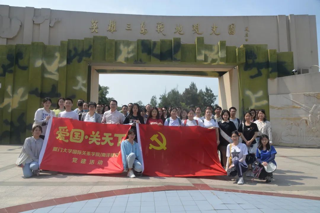 汲取奋进力量,勇担时代使命。为引领广大师生永远跟党走,奋进新征程,全面贯彻落实党史学习教育常态化长效化的要求,扎实做好基层党建工作,以实际行动迎接党的二十大胜利召开,7月15日上午,厦门大学国际关系学院/南洋研究院师生党员前往英雄三岛战地观光园开展了首期党员轮训暨第四期“爱国关天下”党员骨干培训。本次培训由国际关系学院/南洋研究院团委书记曾祥轩、党务秘书龙羽西带队,40余名党员骨干参加。