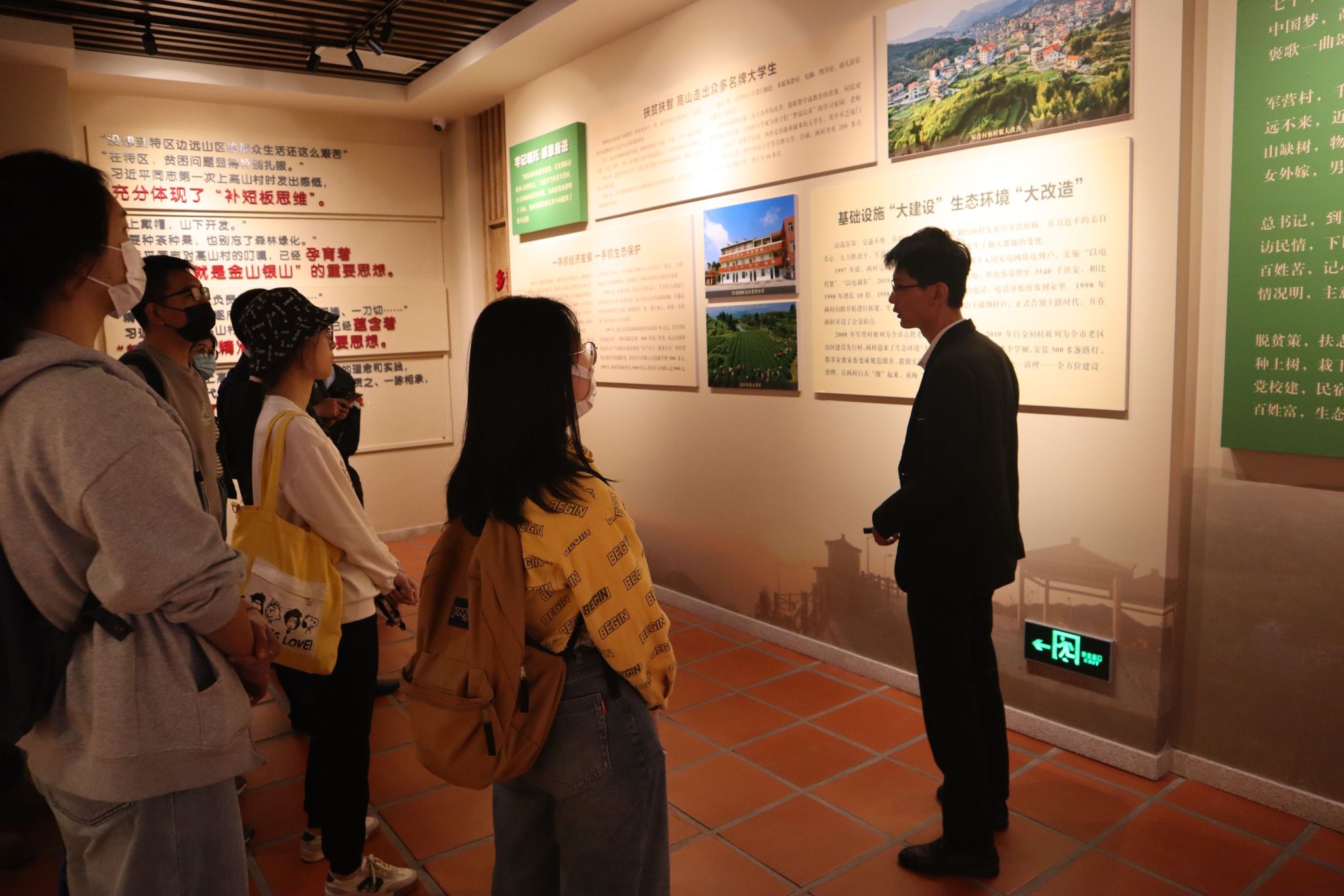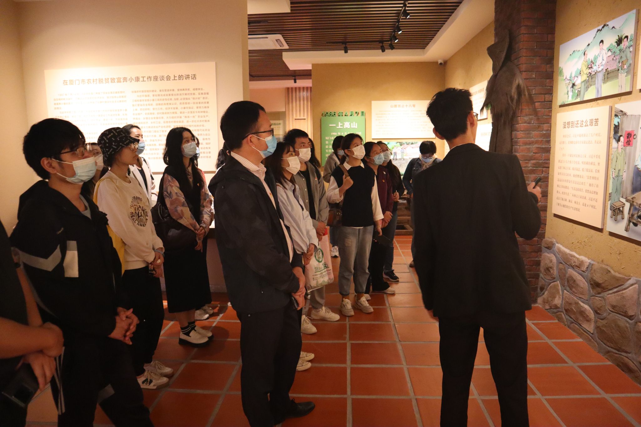 11月22上午,30余名师生党员前往厦门市同安区军营村进行实地教学。1986年和1997年,时任厦门市副市长和福建省委副书记的习近平同志曾两度前往军营村调研,面对群众生活艰苦、贫困问题扎根的军营村,他提出了“山下戴帽,山下开发”、“既要种茶种果,也别忘了森林绿化”等绿色生态发展的重要理念,为军营村发展方向做出了明确指示。牢记习近平总书记嘱托,军营村通过打破思想藩篱,大力发展乡村经济,加强村民自治,已蜕变成为“中国最美休闲乡村”、全国乡村治理示范村。