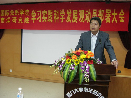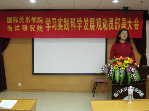 3月18日晚,我院在嘉庚主楼514召开了学习实践科学发展观动员部署大会,大会由黄俊清副书记主持,党总支范丽书记和团委郑碧娇书记出席了大会,参加大会的还有各支部书记委员和学生党员。大会上范书记作了我院关于深入学习实践科学发展观的动员发言和部署安排工作,内容简要如下: