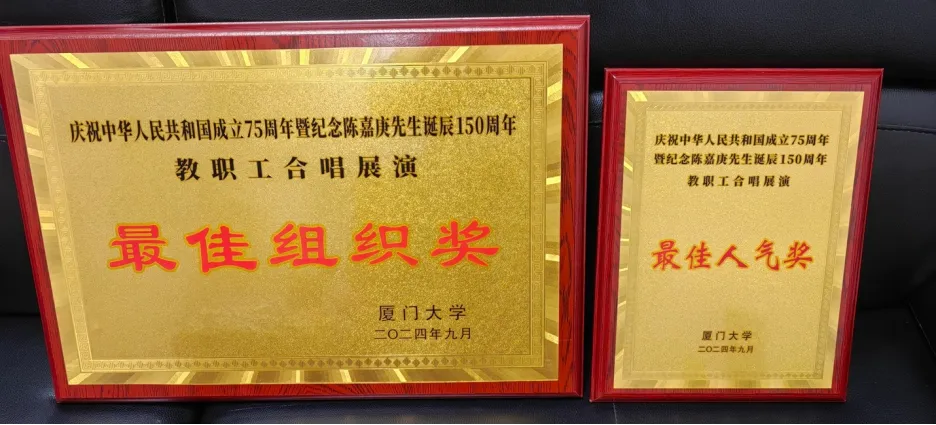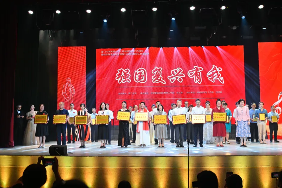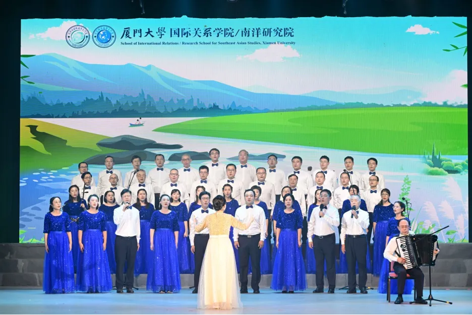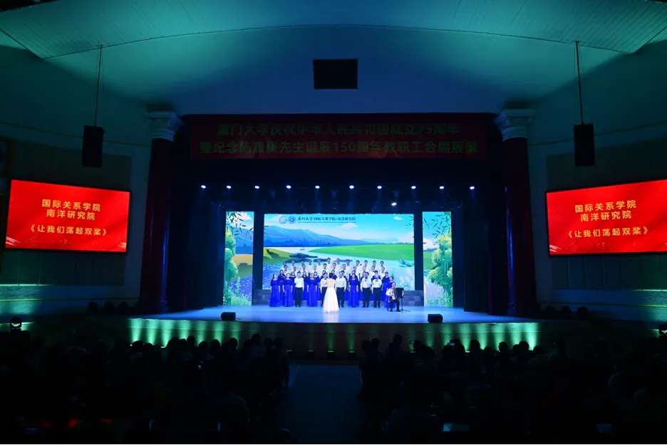 2024年9月29日-30日,厦门大学庆祝中华人民共和国成立75周年暨纪念陈嘉庚先生诞辰150周年教职工合唱展演在建南大会堂隆重举行。在9月29日晚上,国际关系学院/南洋研究院40余名教职工组成的合唱队以一曲轻快婉转的《让我们荡起双桨》,抒发了热爱党、热爱祖国、热爱生活的真挚感情,最终以精彩表演荣获“最佳组织奖”和“最佳人气奖”。