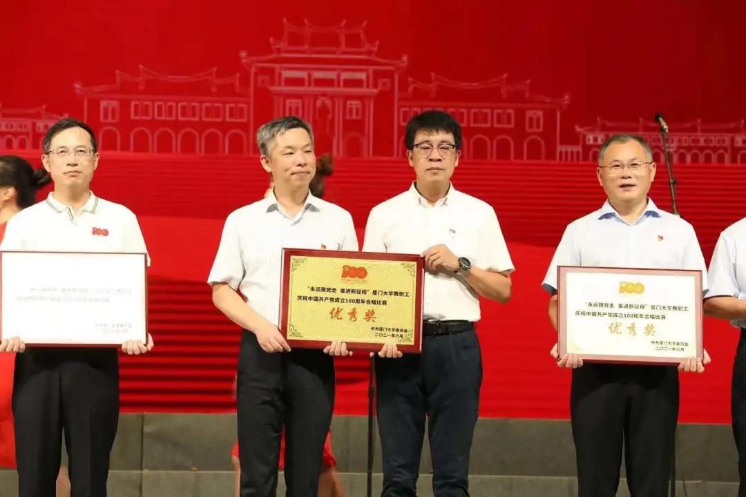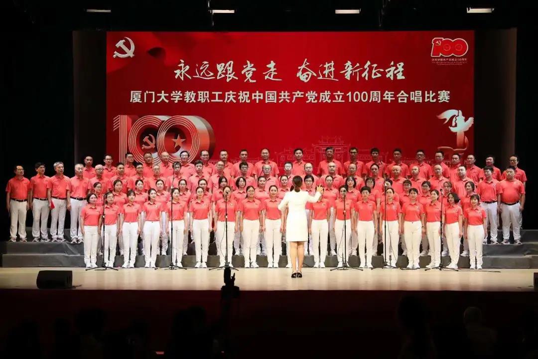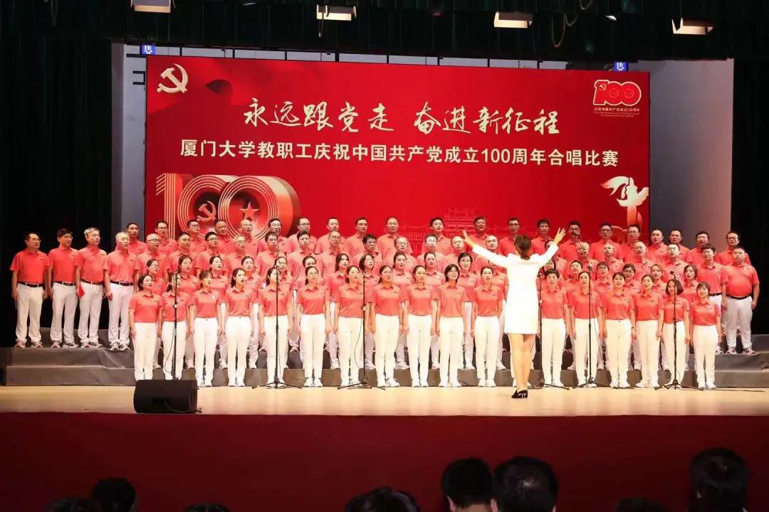 6月26日,由中共厦门大学委员会组织,以“永远跟党走,奋进新征程”为主题的教职工合唱比赛在建南大会堂唱响。各学院队伍欢聚一堂,共同庆祝中国共产党成立100周年。经过激烈角逐,我院教职工合唱队荣获优秀奖。