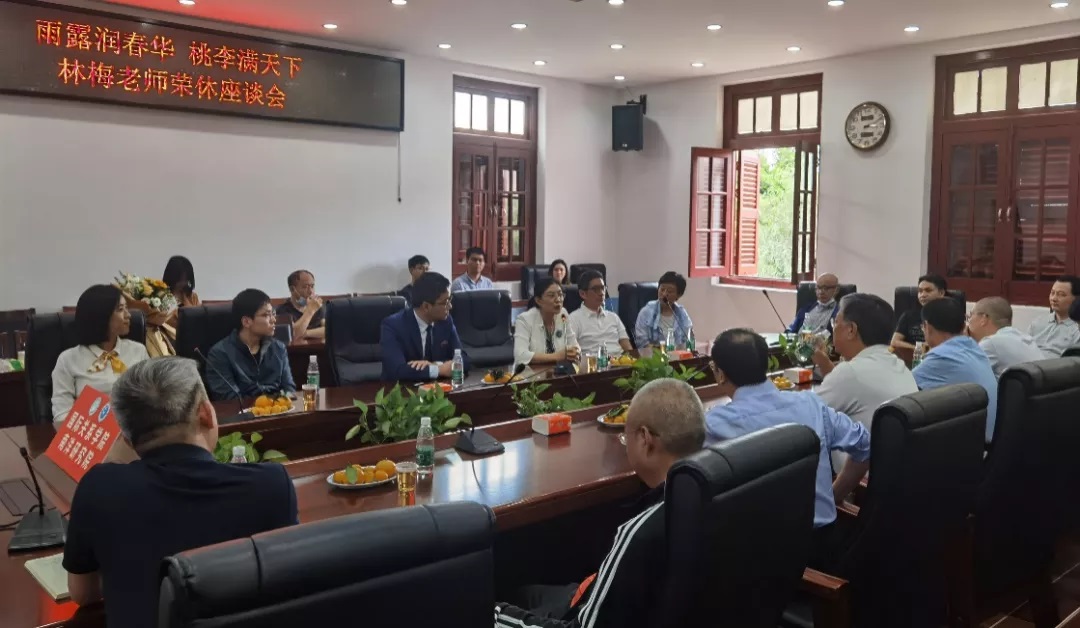 2021年11月1日下午,南安楼301(3)会议室里洋溢着浓浓的暖意。这是学院为光荣退休的林梅老师举办的荣休座谈会。学院领导和师生代表与林老师共聚一堂,畅叙美好往事,欢送为学院辛勤工作了31年的林梅老师。