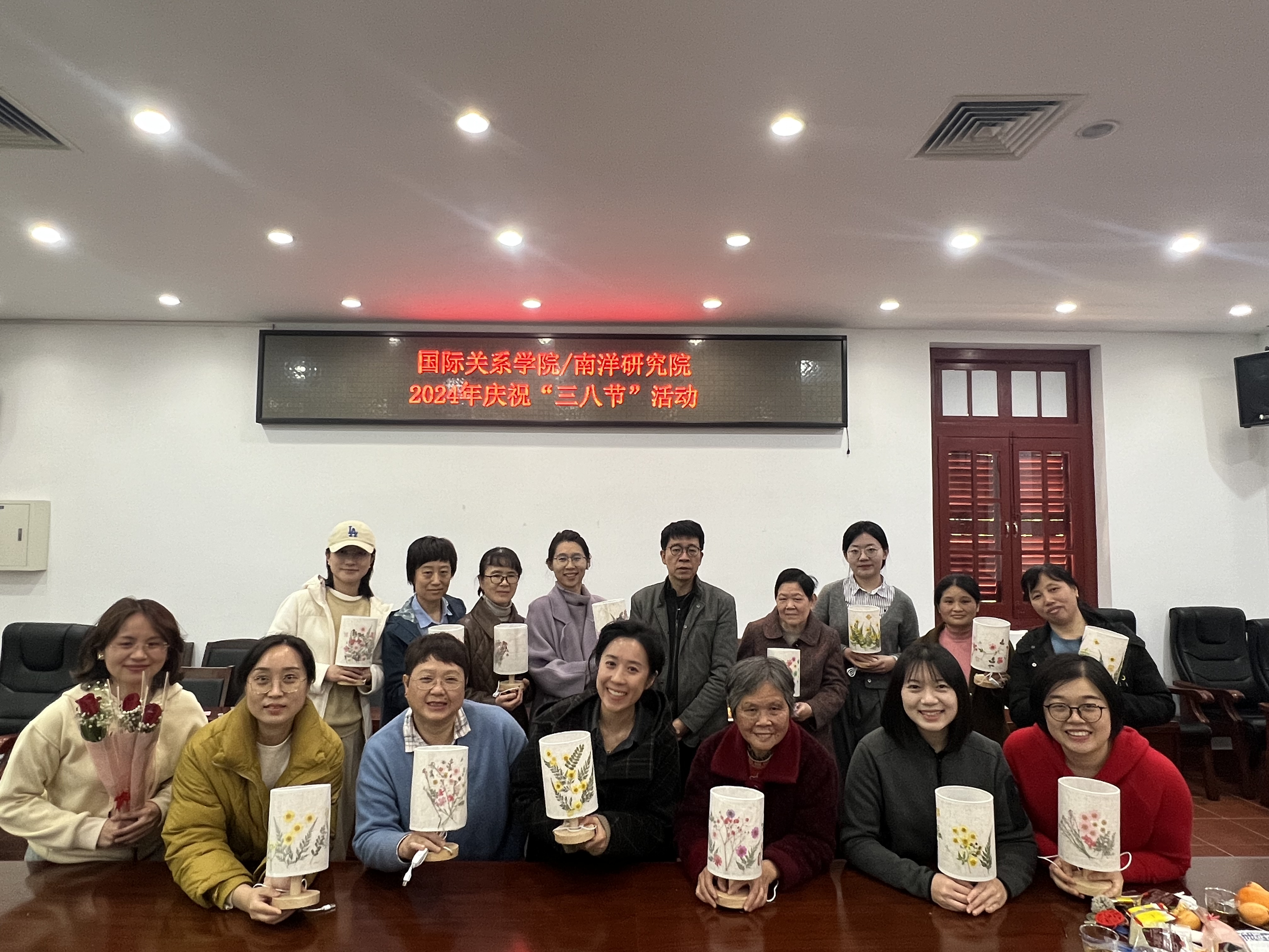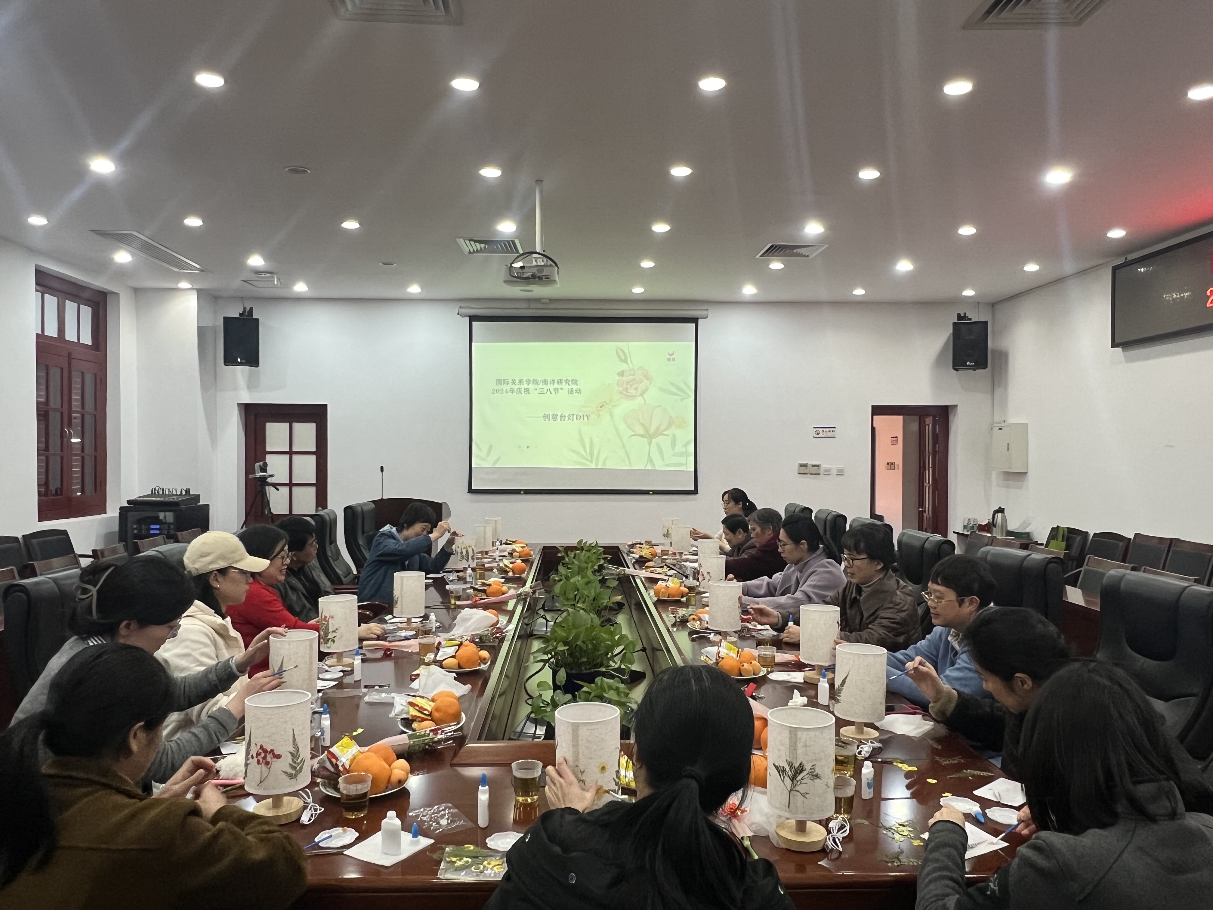 春暖三月,笑靥如花。在第114个“三八”国际妇女节来临之际,国际关系学院/南洋研究院妇委会、工会举办主题活动——创意压花台灯DIY,体验花与灯的碰撞。学院党委书记邱旺土也参加了此次活动,为女老师们送去了祝福。