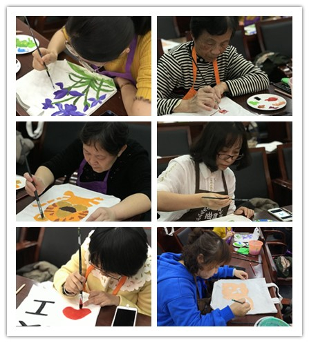 活动安排在午后,首先由工作室的老师为大家介绍了此次手绘活动需要用到的材料,有布袋、丙烯颜料,画笔,铅笔,勾线笔等,接下来老师简要介绍了手绘的步骤,随后女教师们便开始了自己的“艺术创作”。