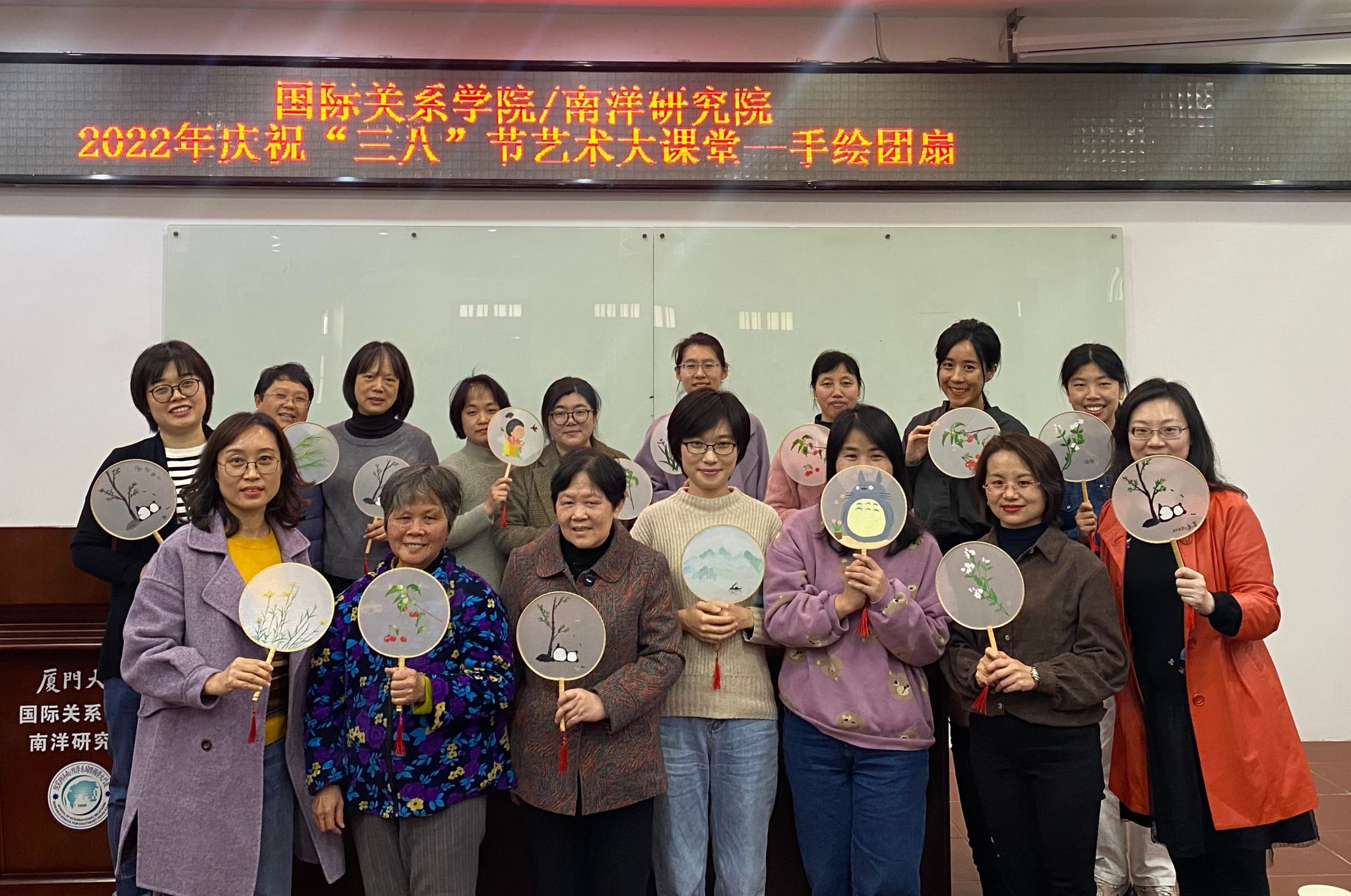 为感谢女教职工在我院教学、管理、后勤保障等各方面的辛勤付出与无私奉献,并展示她们的精神风采,2022年3月8日中午,学院妇委会组织全院女教职工在南安楼101报告厅共同庆祝第112个国际劳动妇女节,一起学习传统工艺——手绘团扇。