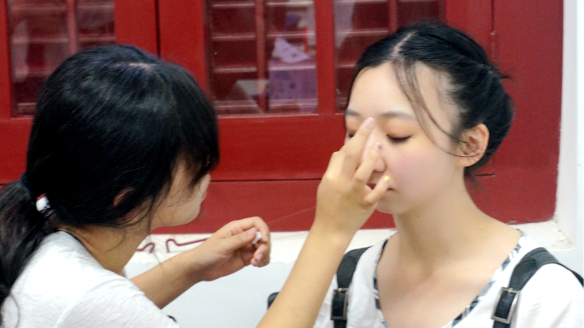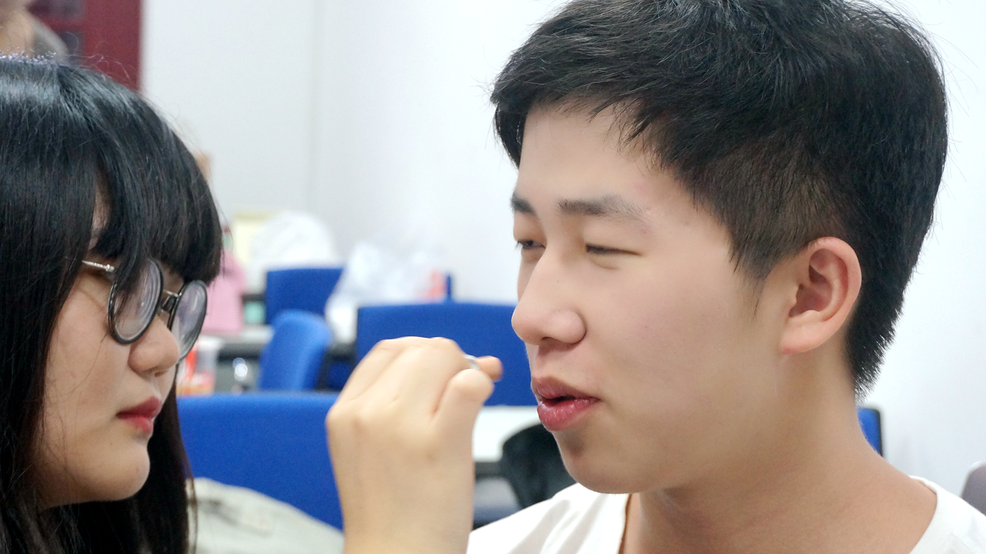 下午三点,参加演出的同学早早来到了南安楼,开始了化妆、服装、等各方面一系列地准备。工作量有点惊人,但果罐妞依旧逗趣地展开着自己的工作。