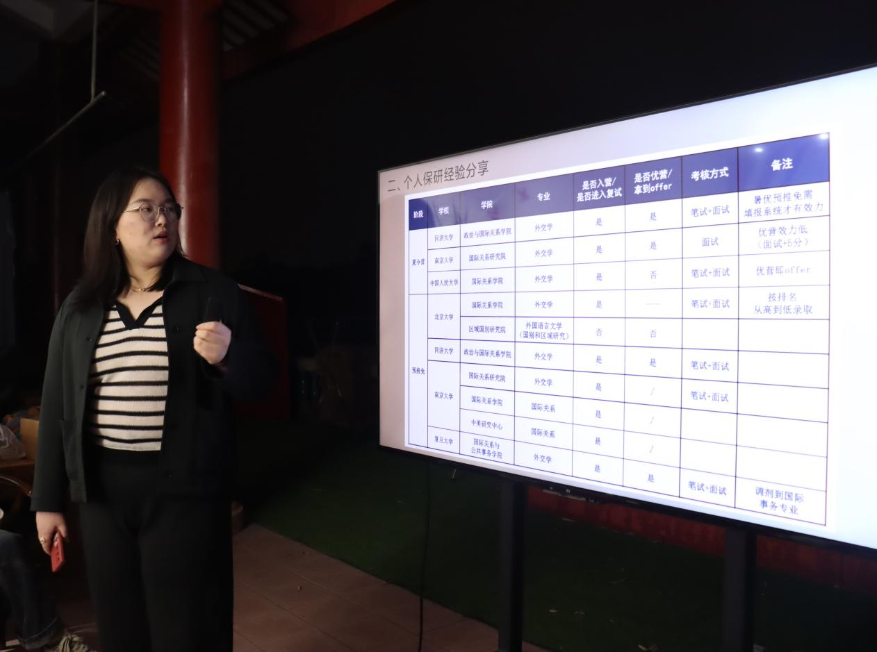 首先分享的是保研至同济大学的李莹莹同学。她介绍了我院近几年的保研去向情况,结合自身在武汉大学、南京大学、中山大学、同济大学的夏令营与预推免经验,提醒有志于保研的同学应重视的一些问题。