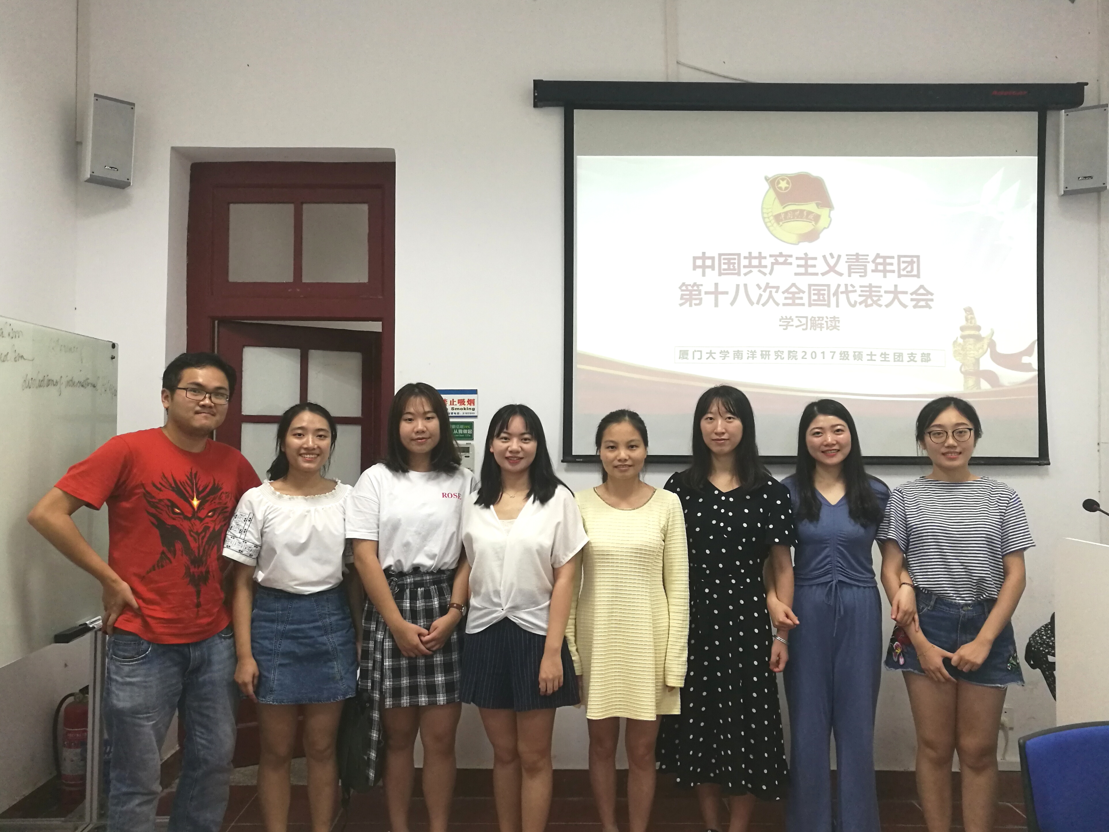 2018年7月16日下午,国际关系学院暨南洋研究院2017级硕士生团支部于南安楼105举行了中国共青团第十八次全国代表大会精神专题学习主题班会,会议由团支部书记陈梦施同学主持。