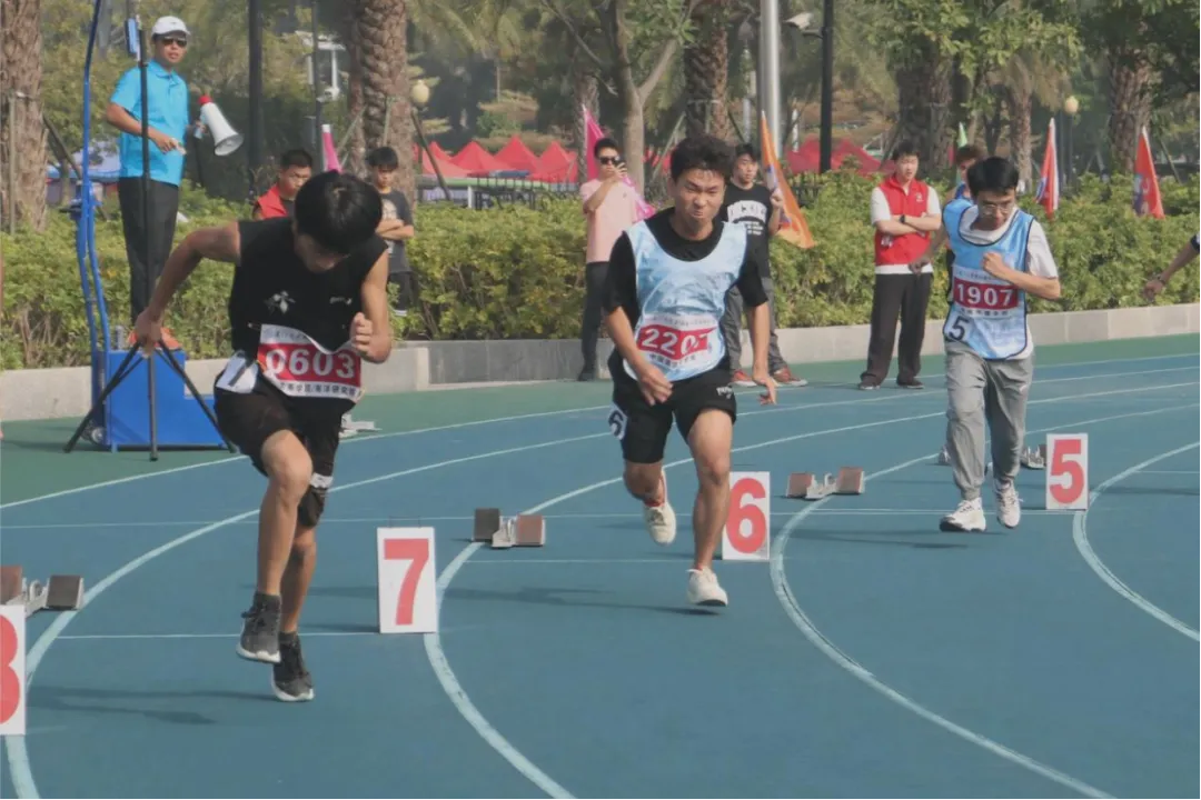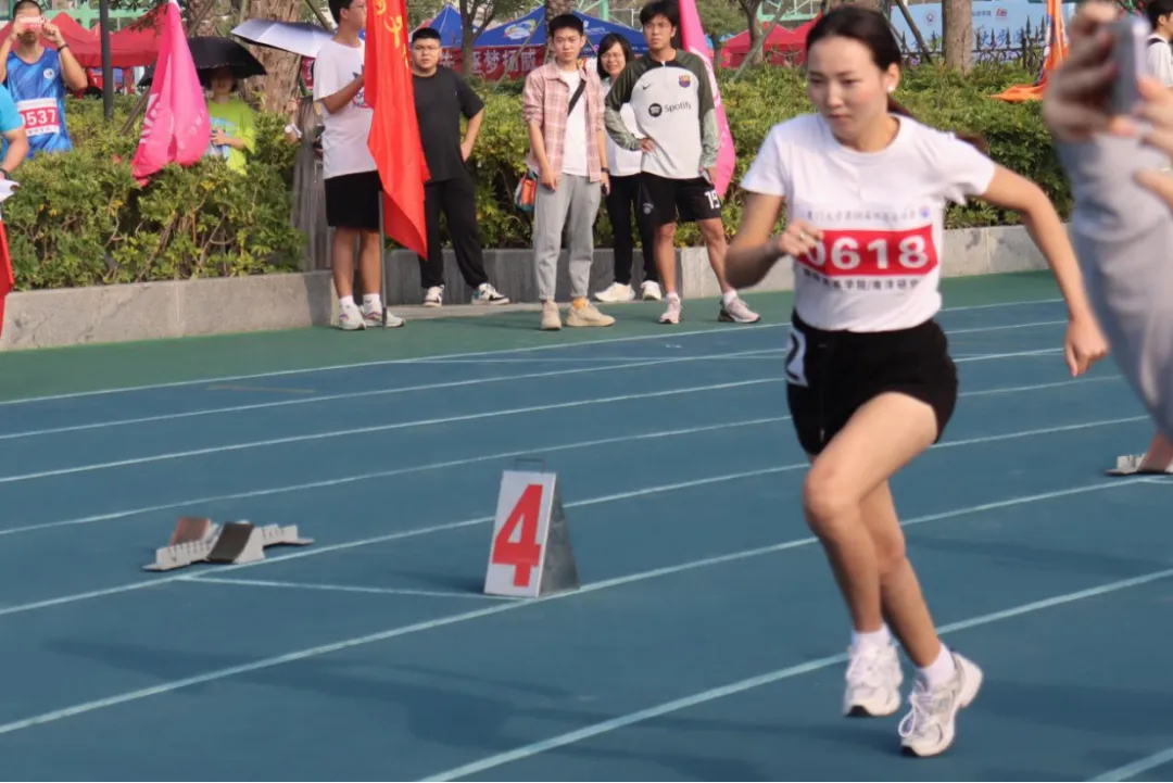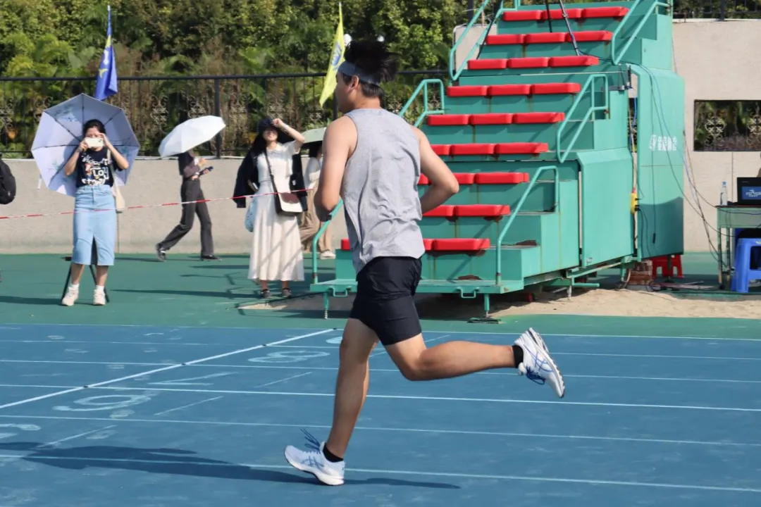 在教职工400米男子组比赛中,尹楠楠老师身姿如箭疾,眼神坚定向终点。教工组的各位老师在赛场上挥汗如雨、奋勇拼搏的身影激励了学生,充分展现了国际关系学院/南洋研究院的竞技风采!