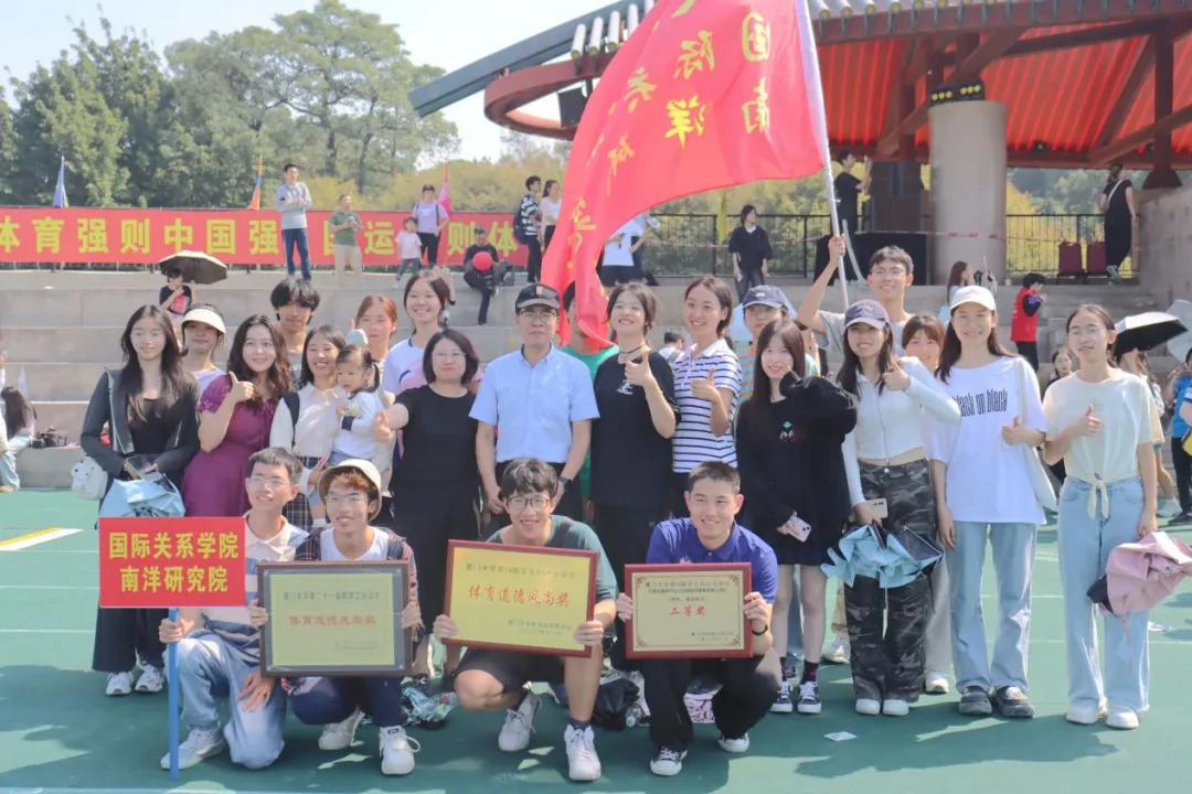 秋风飒爽,旌旗飘扬。厦门大学第58届田径运动会暨第21届教职工运动会暨第32届老年人体育健身大会于5日上午圆满落幕,国际关系学院/南洋研究院收获颇丰,荣获厦门大学第21届教职工运动会体育道德风尚奖、厦门大学第58届学生田径运动会体育道德风尚奖和厦门大学第58届学生田径运动会开幕式健身气功八段锦课间操集体展示评比(思明,漳州校区)二等奖,下面让我们来回顾4至5日国际关系学院/南洋研究院运动健儿们的飒爽英姿和精彩表现!