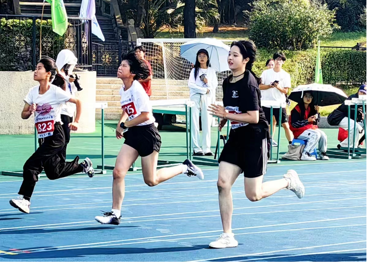 在男子本科生组1500米长跑比赛中,张熙烨凭借高强度的意志与坚定的毅力跑完全程,令人佩服与骄傲。在男子本科生组100米决赛中,田雨同学顺利完成比赛,足下生风,健步如飞。在男子本科生组4×100米接力决赛中,王铭毅、丁俊程、林宇翔、张国春四名同学奋力冲刺,获得了小组第二,112分的优异成绩。