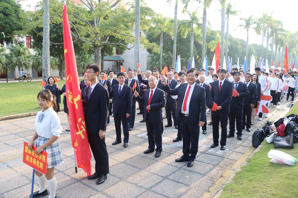 2023年11月3日上午8:00,厦门大学第58届学生田径运动会暨第21届教职工运动会暨第32届老年人体育健身大会开幕式于演武场如期举行。国际关系学院/南洋研究院全体党政领导、党委委员,以及全院师生代表参加了开幕式。