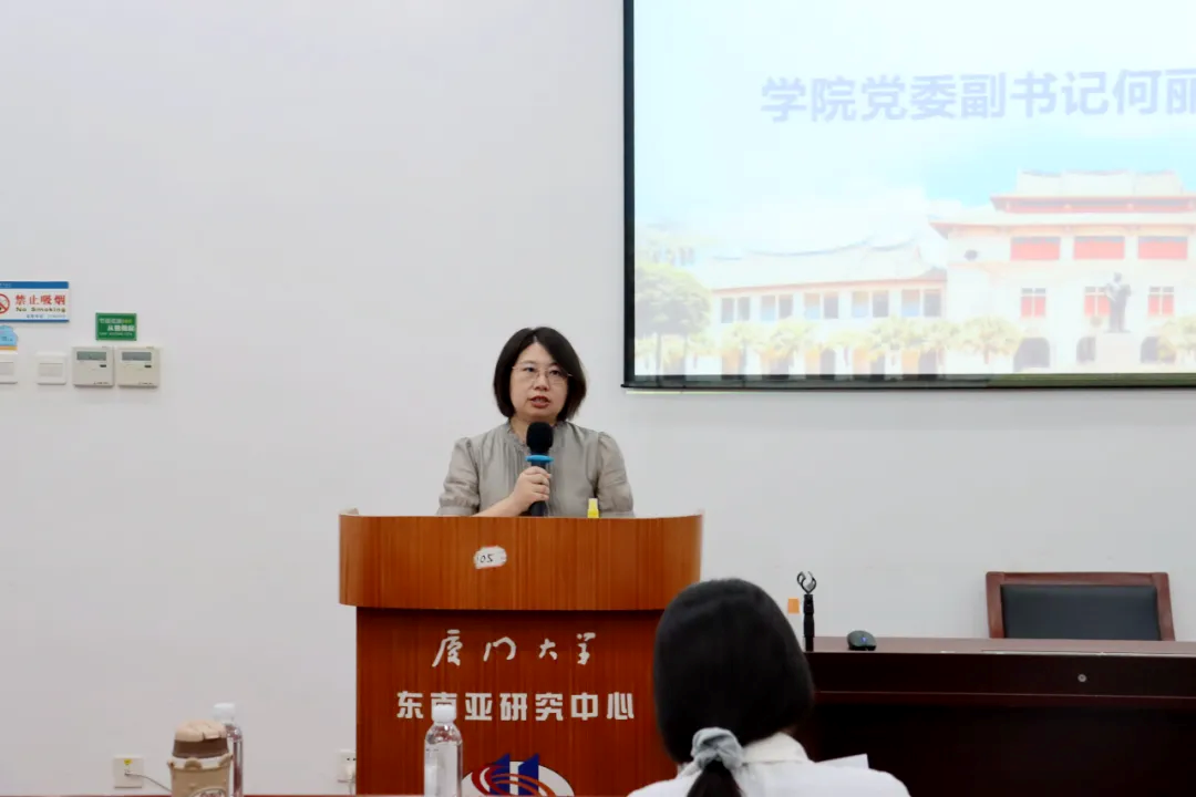 10月12日下午,厦门大学国际关系学院/南洋研究院暑期社会实践总结暨成果展示大会在南安楼316室举行。学院党委副书记何丽苹老师、团委书记曾祥轩老师、辅导员谢钰淋老师、各实践队代表及2023级全体新生参加会议。