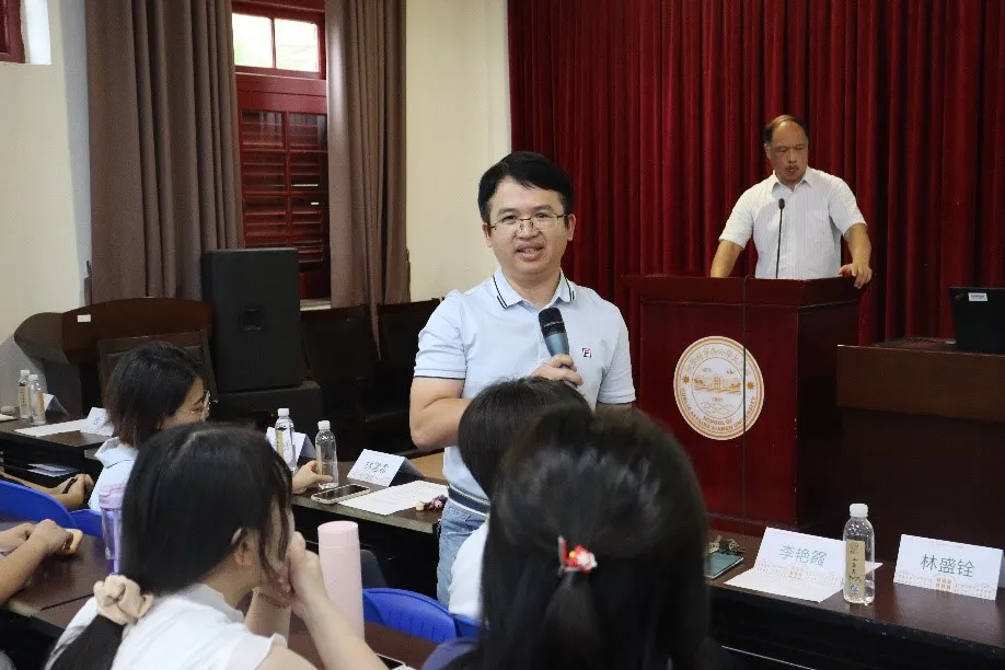 随后公共事务学院副系主任李德国从社会现实情况出发,借由最近台风对应急管理进行了专业的简要介绍,并进一步讲解目前公共管理系的学科实力、知识更新现状、师资力量、专业优势与未来前景,最后对同学们未来的学习生活做出勉励与期望。