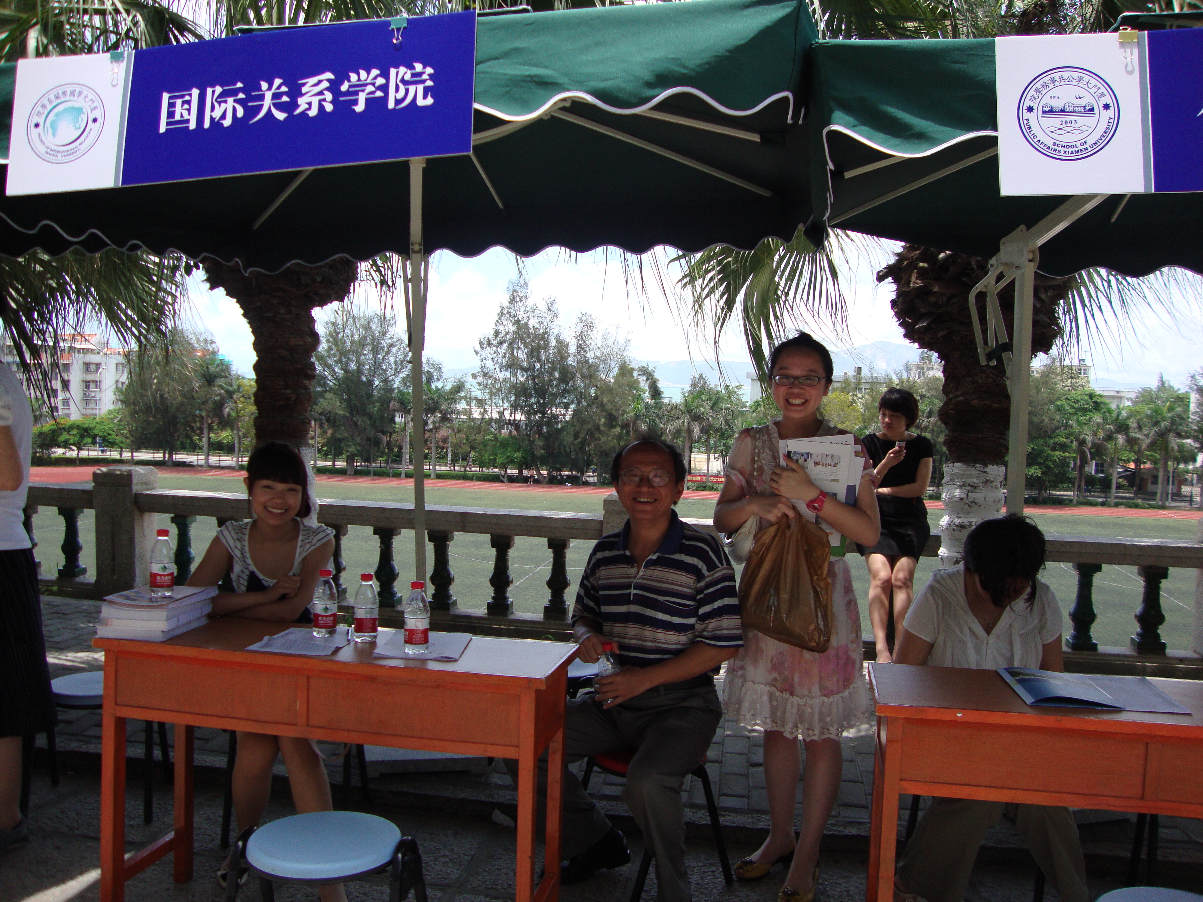 6月17日上午10:00至11:30,厦门大学2011年本科招生咨询会在建南大礼堂前举行,各院均派出代表进行咨询答疑。我院国际关系系主任李一平教授带领博士生、本科生代表参加了该咨询会。咨询会上,许多考生及家长对国际关系学院表现出浓厚的兴趣,纷纷来我院席位进行咨询,主要的问题围绕在学院所开设的专业、教授的课程、对考生外语水平及身体状况的要求、往年录取成绩、今年的招生计划以及毕业后的发展方向等方面。对于家长及考生的疑问,我院代表一一耐心解答。
