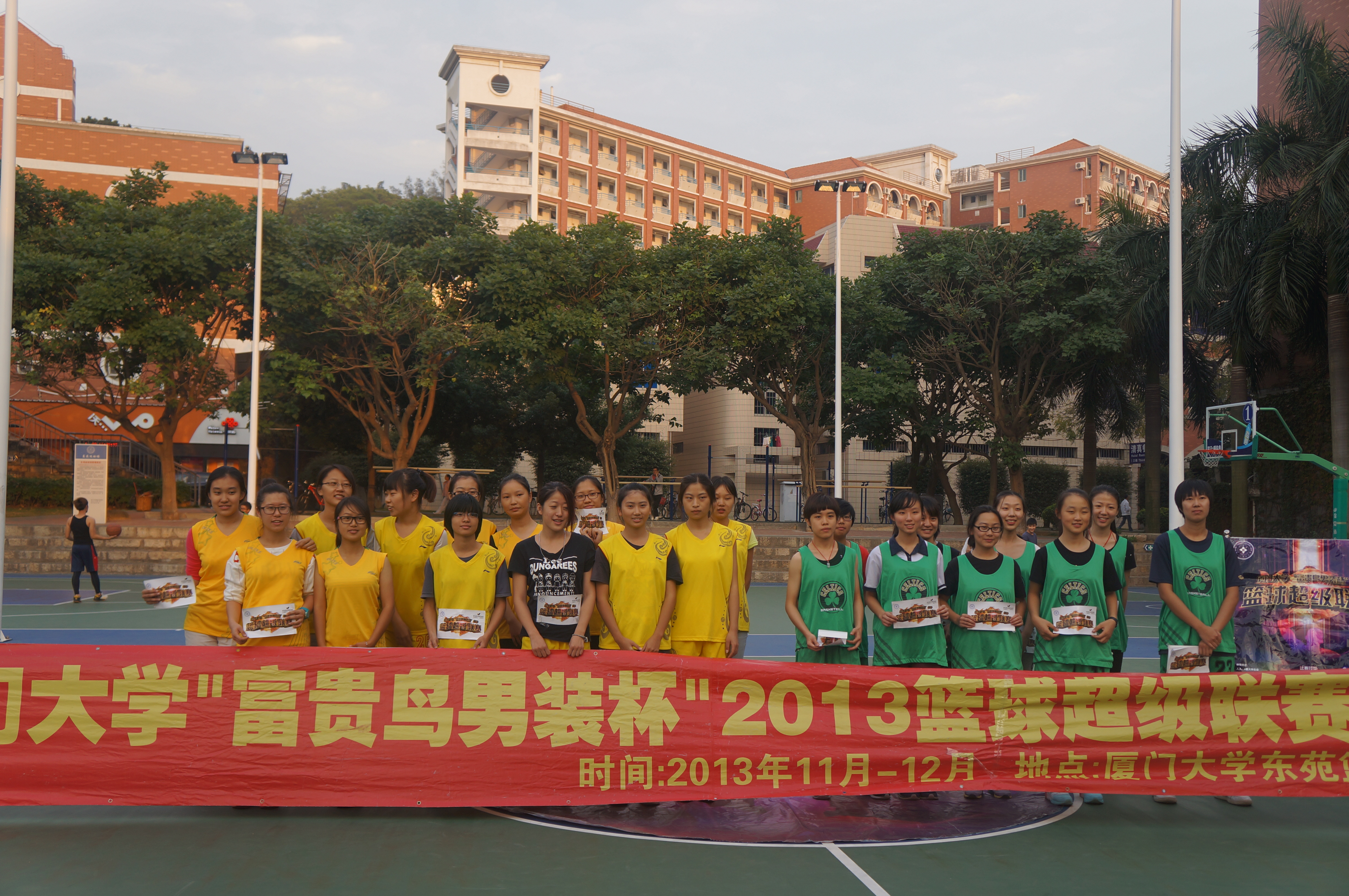 2013年11月20日下午4时45分,厦门大学篮球超级联赛女篮比赛小组赛在东苑篮球场继续进行,国际关系学院女子篮球队迎来了本赛季的最后一个对手——建筑与土木工程学院。两队经过40分钟的激战,最终国关以4:19的比分败北。